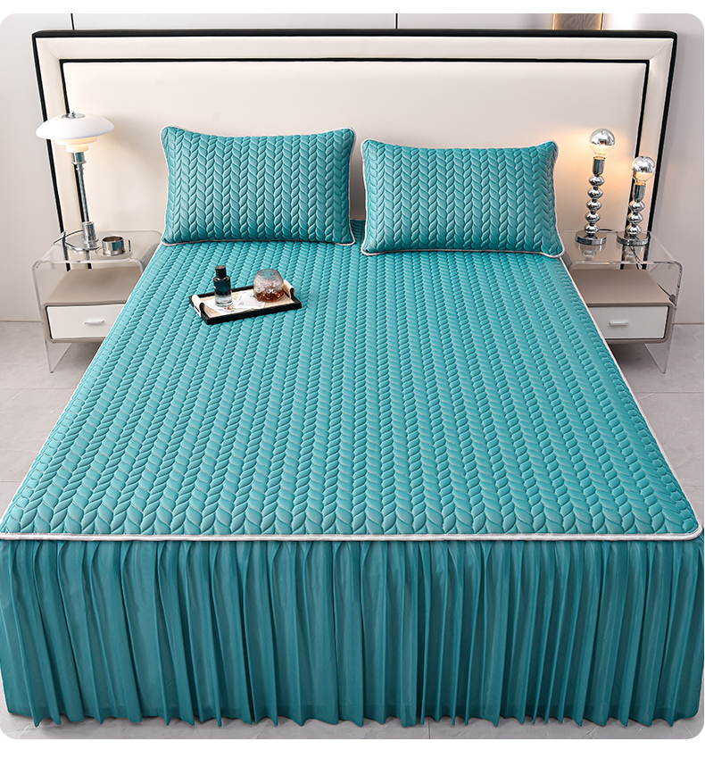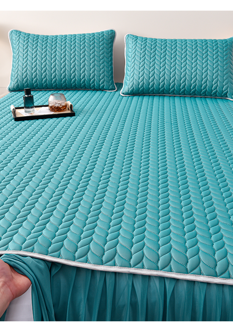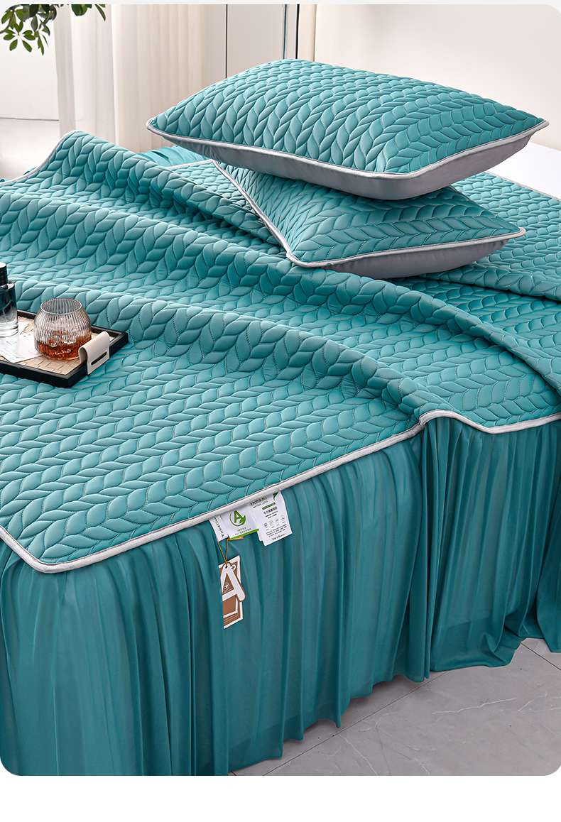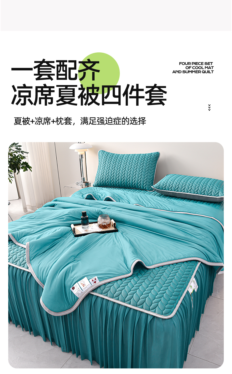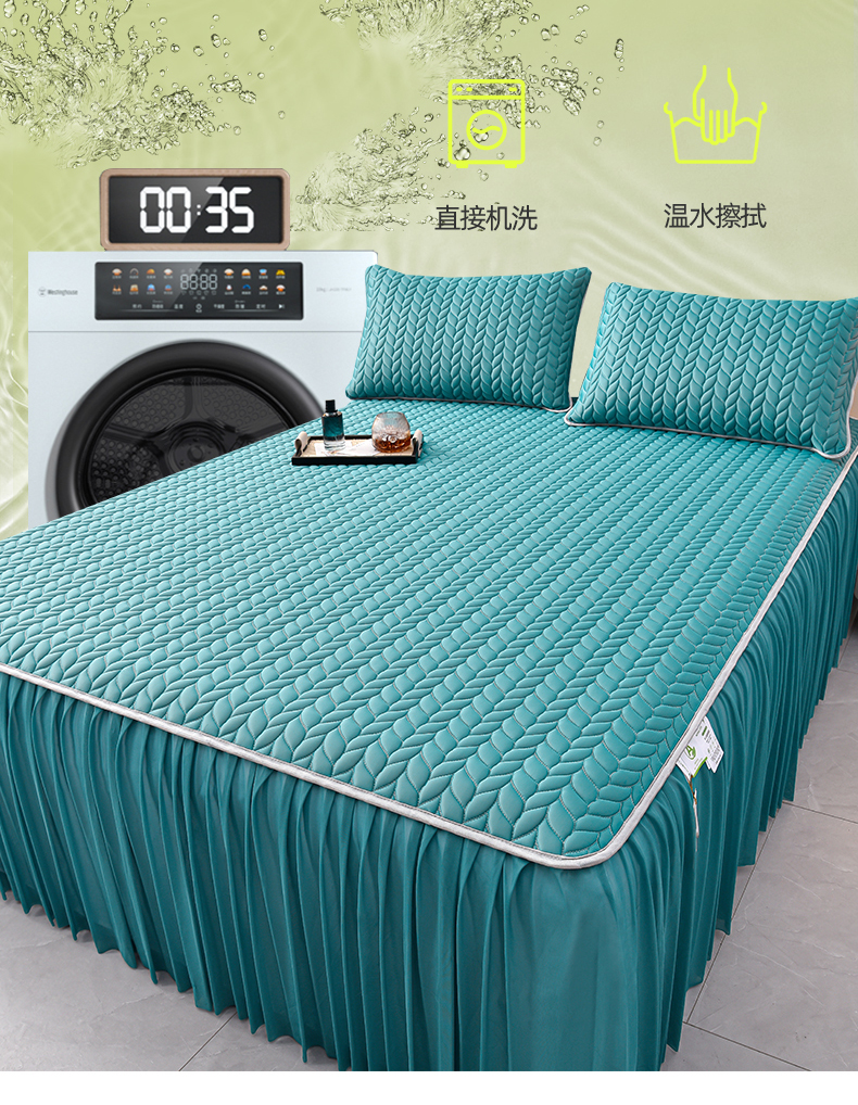 商品名称:(总)布卢姆床垫 2025新款A类5mm纯色乳胶凉席床裙梦田系列夏被凉席四件套