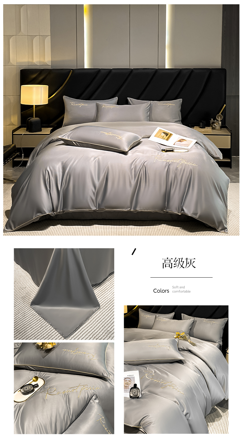 商品名称:博纳家纺 2024新款水洗真丝刺绣四件套系列--艾米系列 高级灰