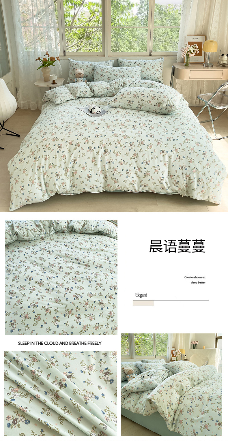 商品名称:乐萱家纺 2024新款水洗云朵棉被套小清新超柔印花单被套 晨语蔓蔓
