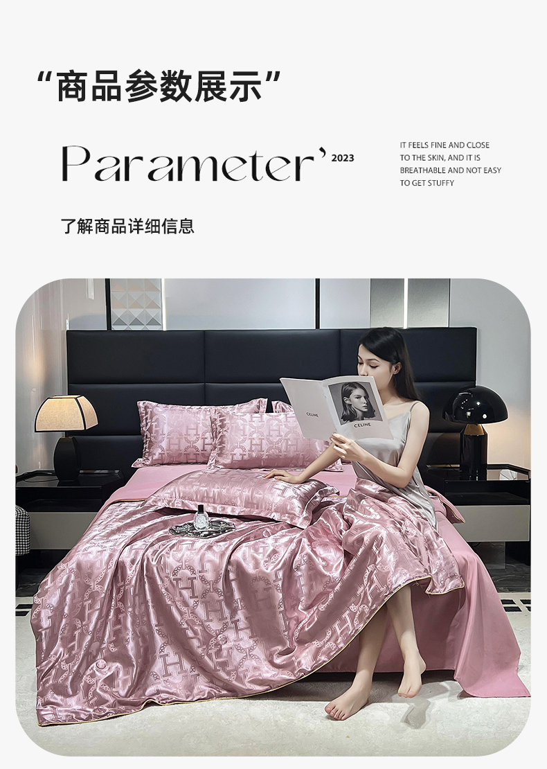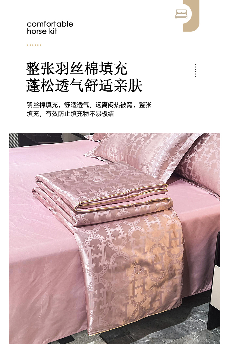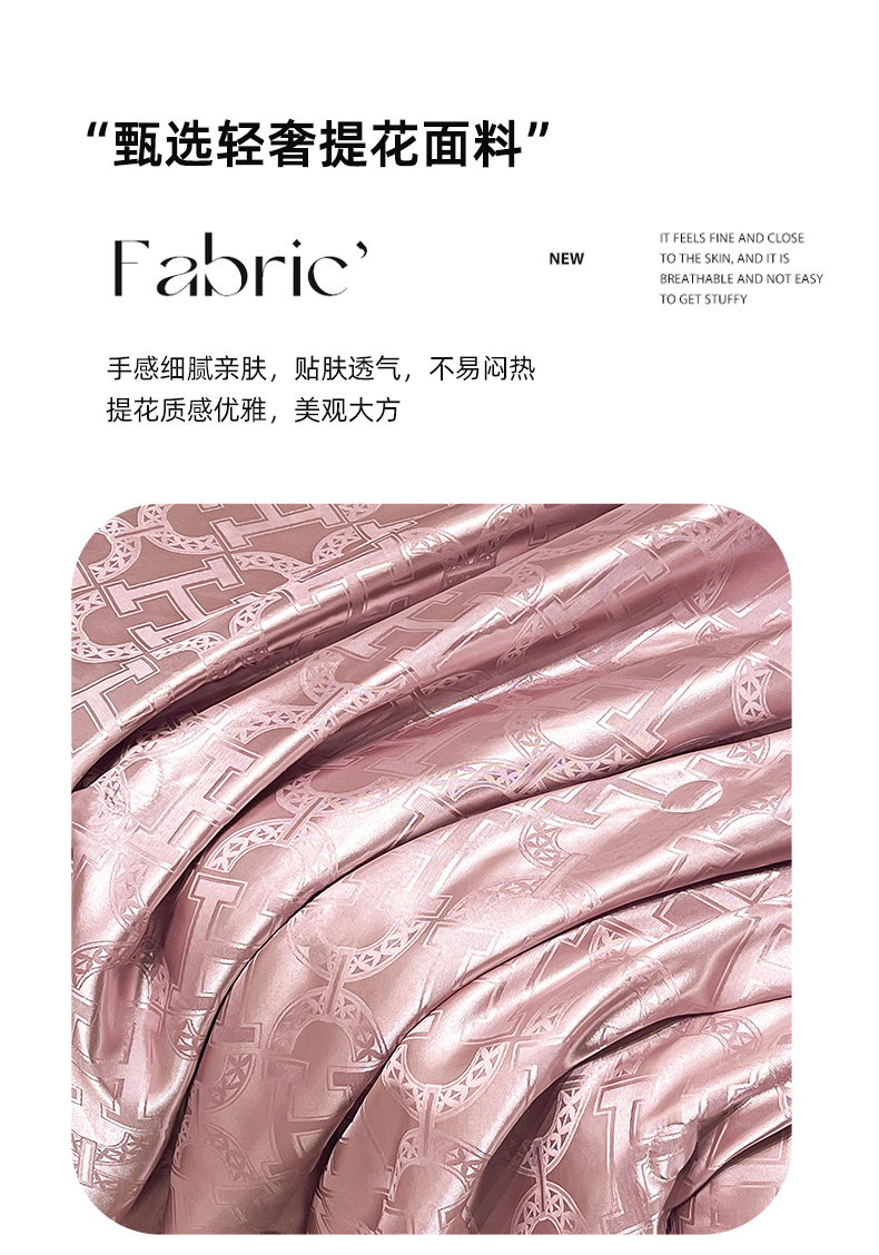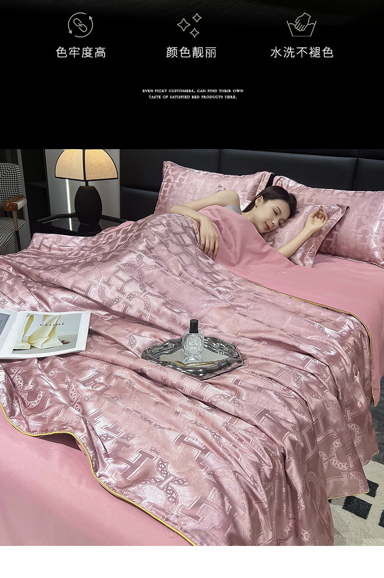 七夜居 2025新款夏凉被空调被贡缎提花水洗真丝夏被四件套 梵克丝-豆沙