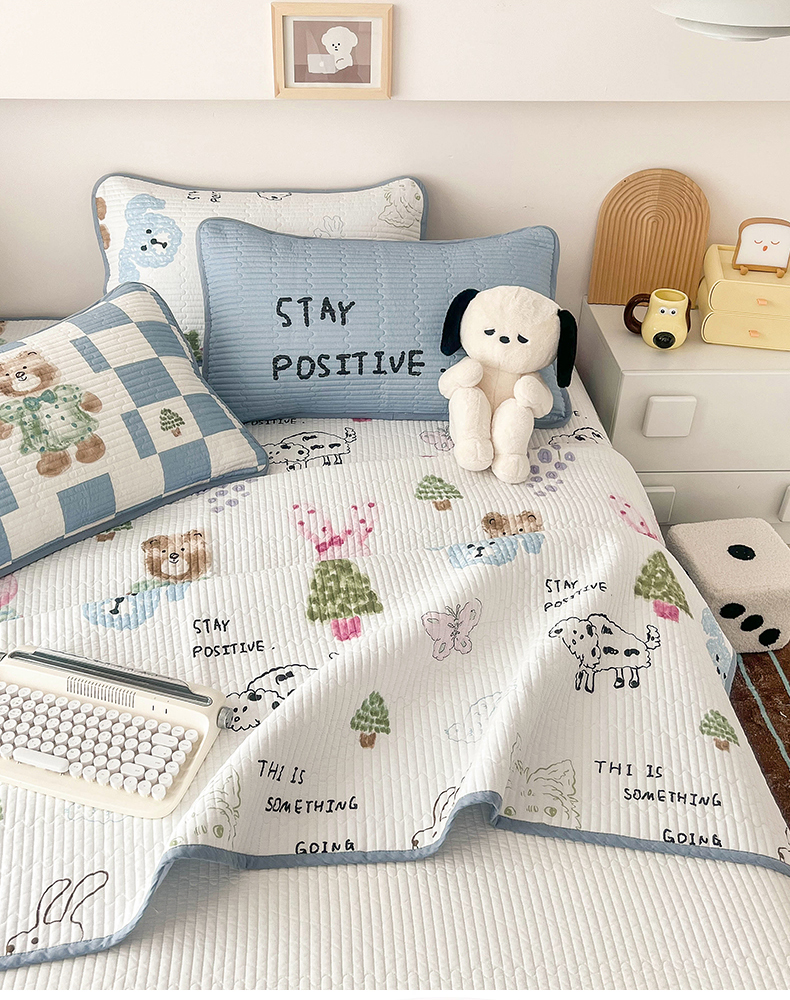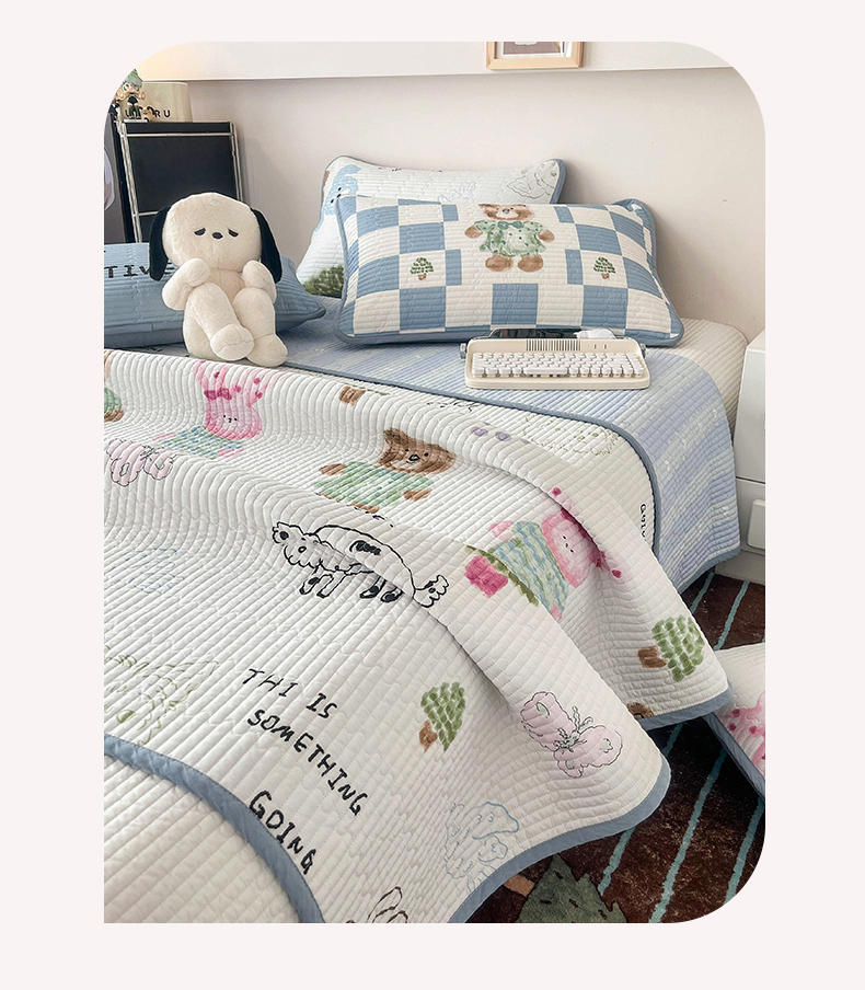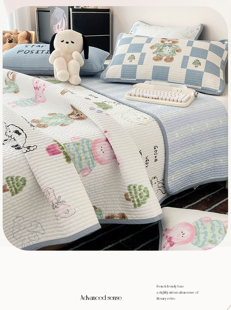 茉夕家纺 2024新款数码双面纯棉水洗床盖 小憨豆