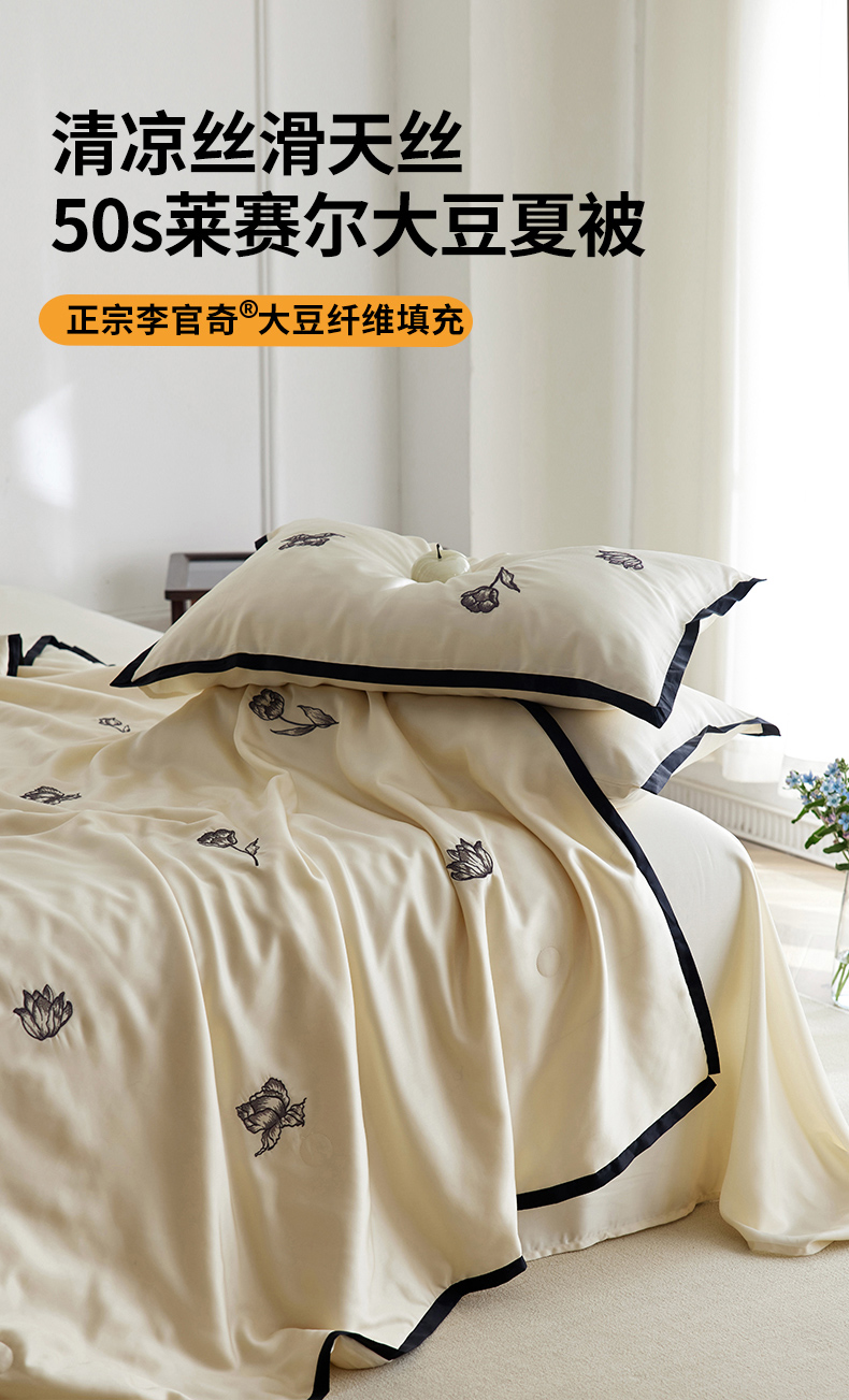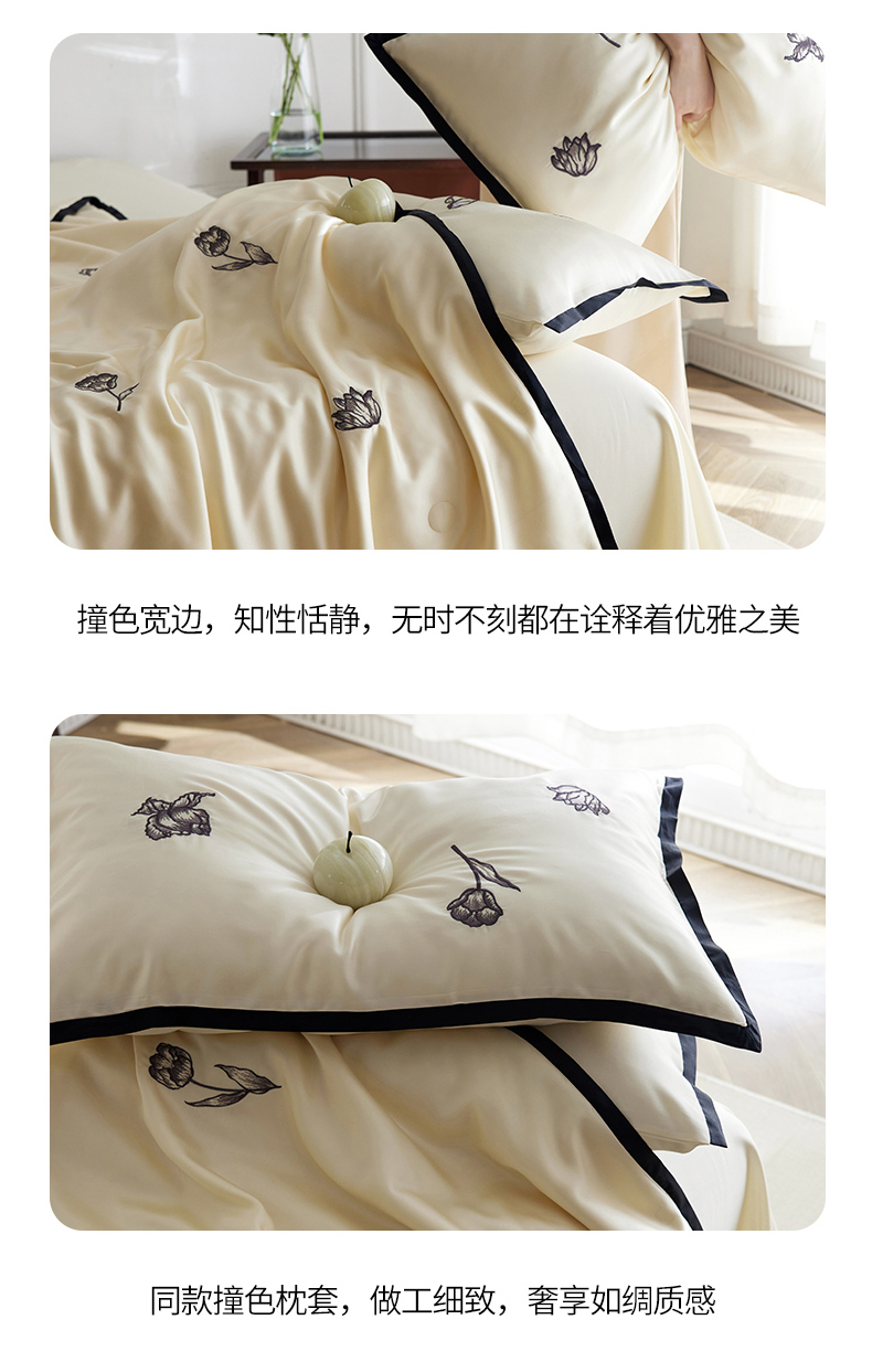 • 91家纺网 家纺一手货源 找家纺 安莱生活 2024新款莱赛尔天丝绣花夏被四件套-宽边系列 夏被-郁金夜皇后