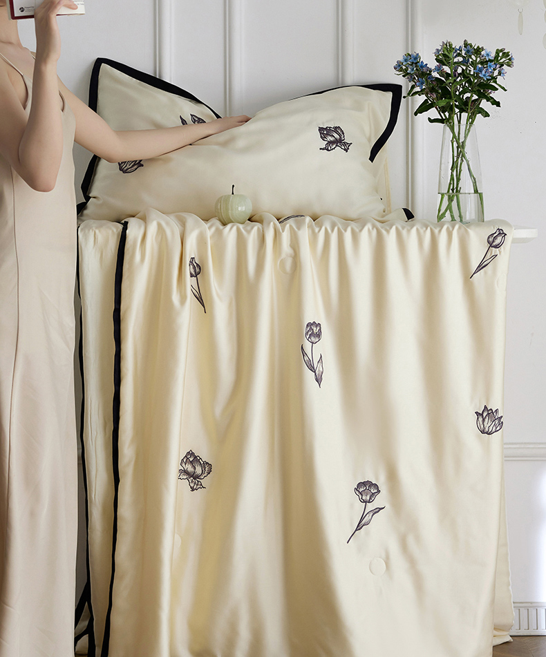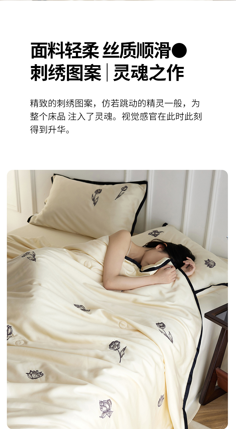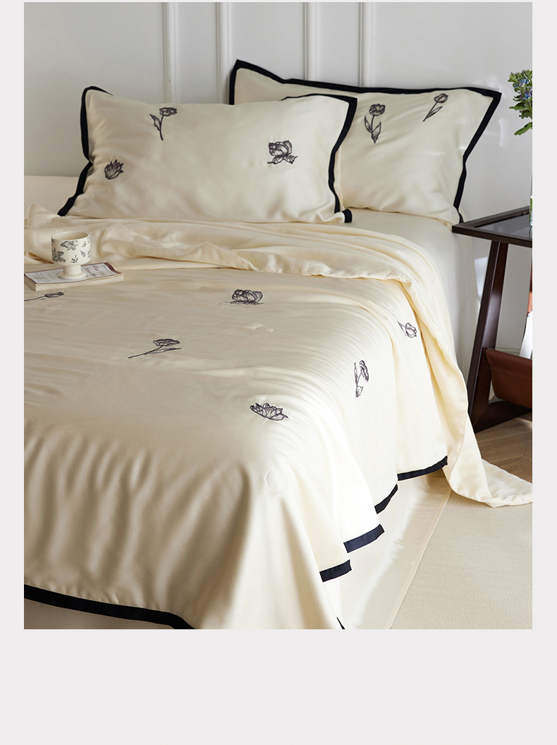 安莱生活 2024新款莱赛尔天丝绣花夏被四件套-宽边系列 夏被-郁金夜皇后