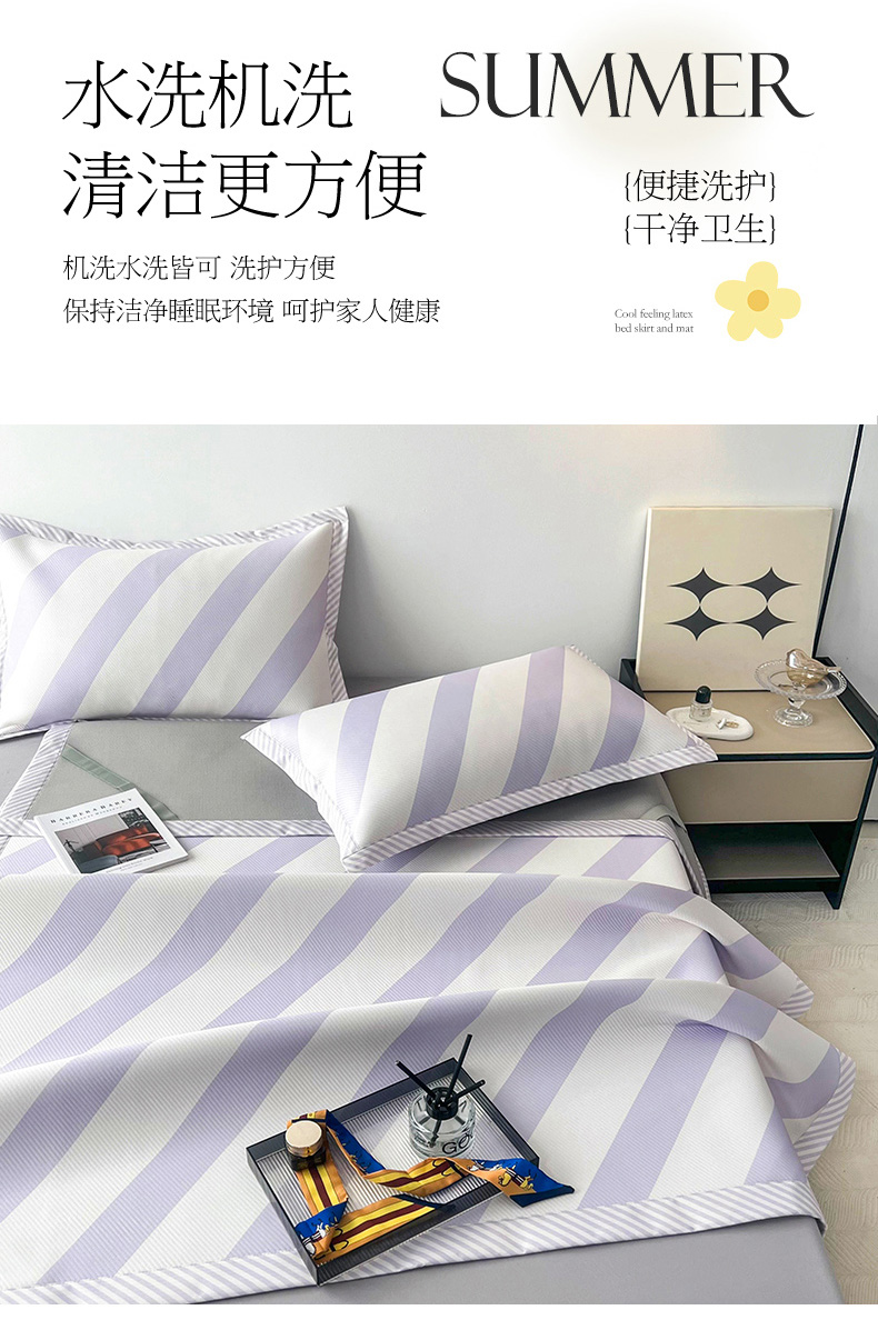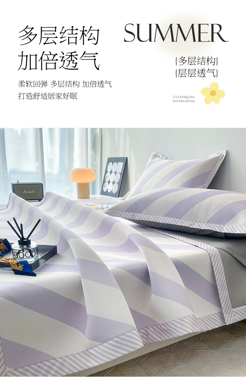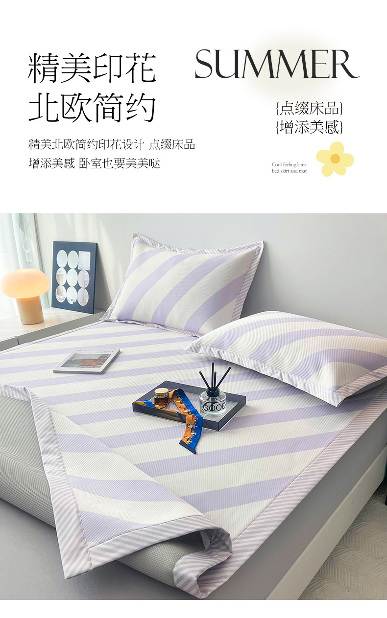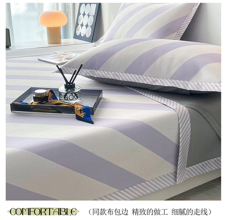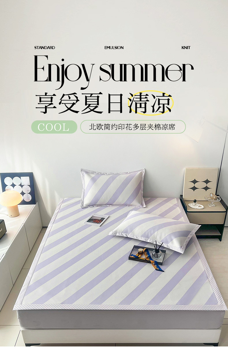 商品名称:倾慕家纺 2024新款北欧简约印花夹棉凉席 洛林-紫