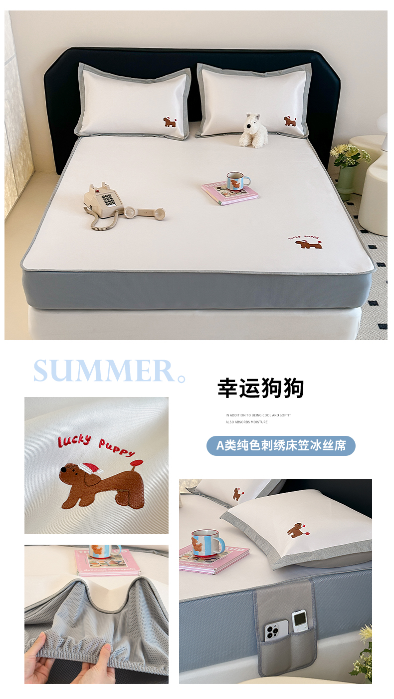 商品名称:昔可家纺 2024新款A类900D纯色绣花床笠款冰丝席 幸运狗狗