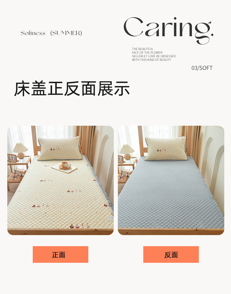 (总)上喜 2026新款艾草棉床盖多功能夏被,粉,灰,咖色