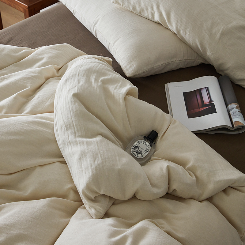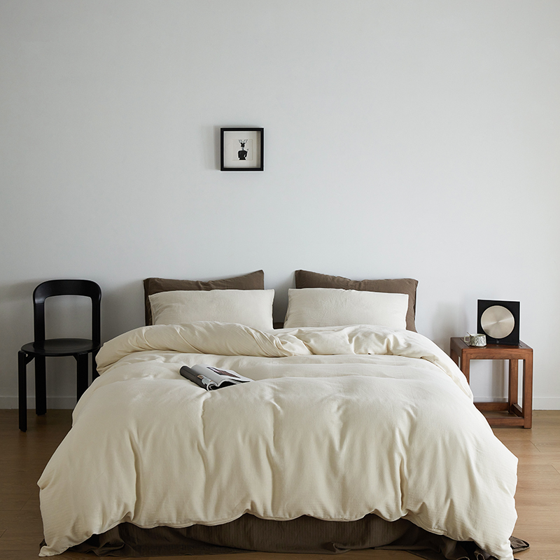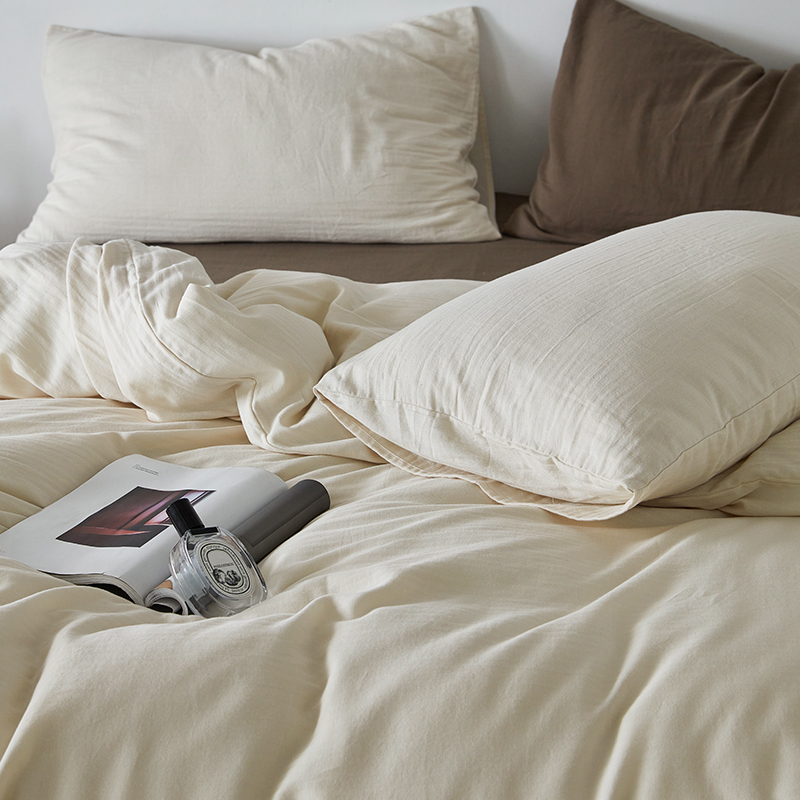 (总)梦享生活 2022新款水洗棉华夫格双拼四件套,华夫格焦糖,华夫格芒果黄双拼,华夫格奶白,华夫格水蓝纯色,华夫格水蓝双拼
