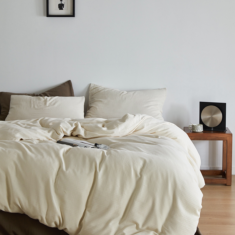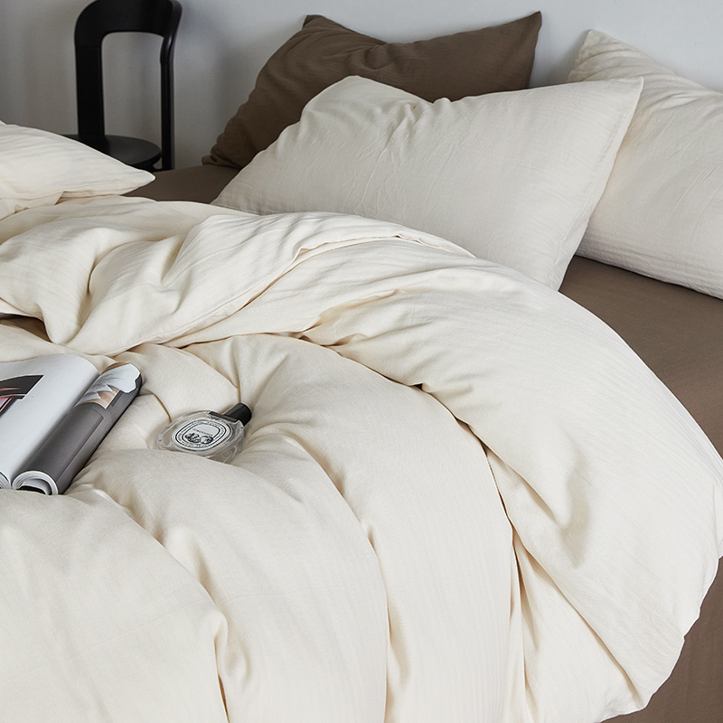(总)梦享生活 2021新款华夫格水洗棉四件套,白色,粉色,黄色,卡其,浅灰,天蓝