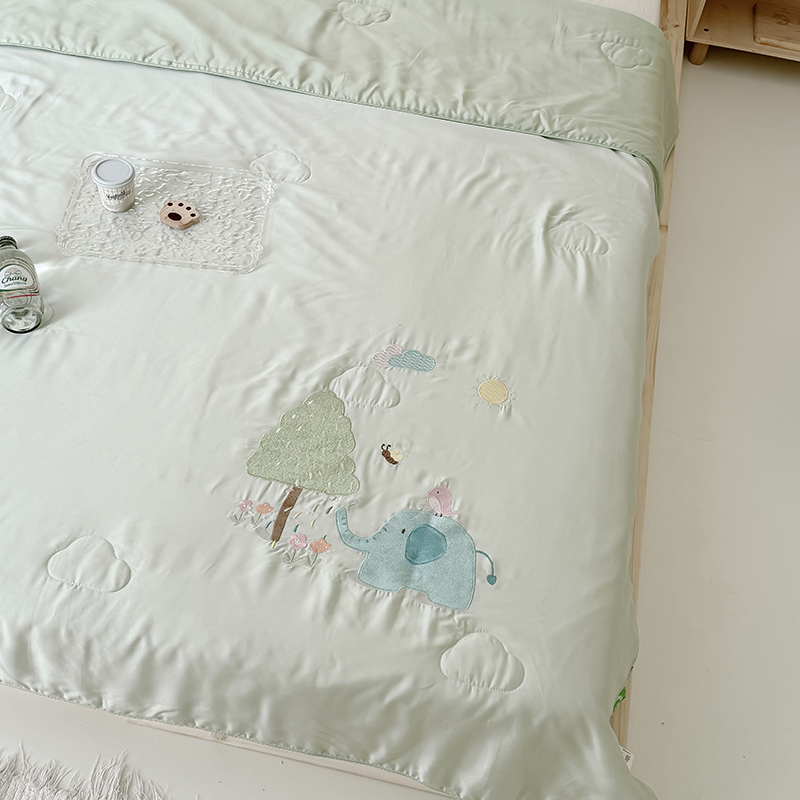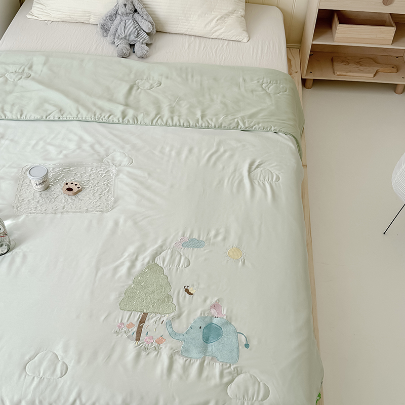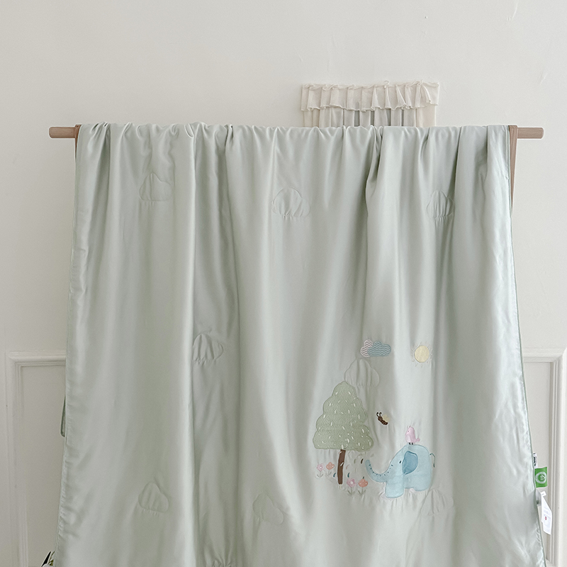 西西家居 2024新款A类正宗60支兰精天丝儿童夏被 绿色小象