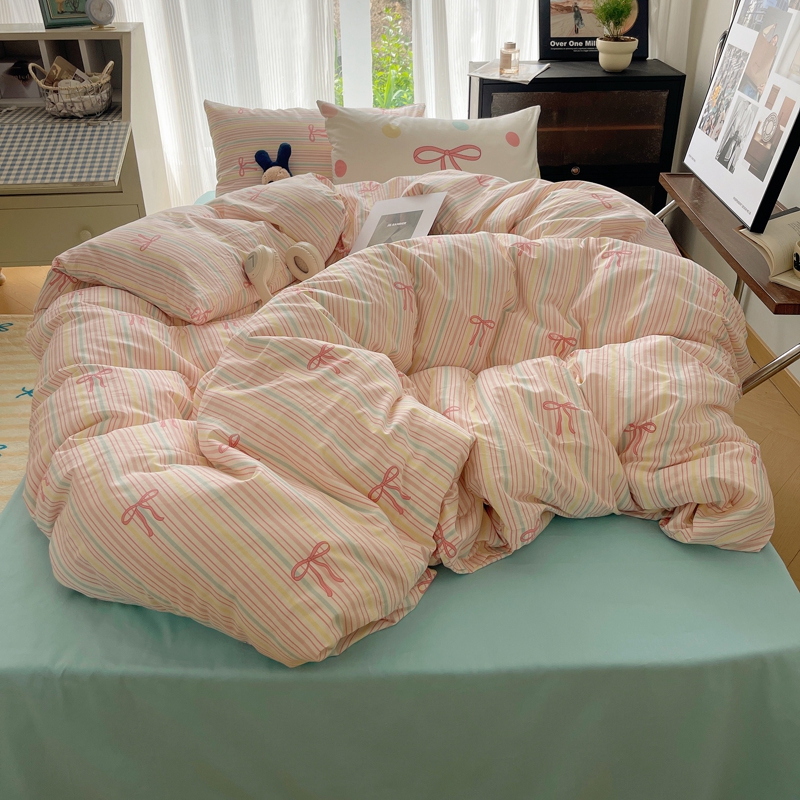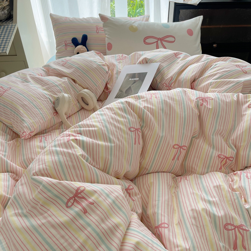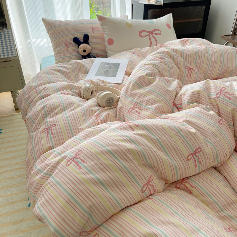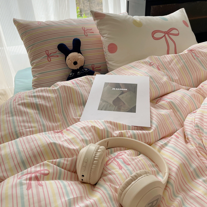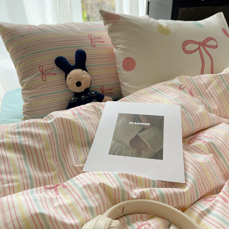 桃喜 2024新款Ins风全棉混搭系列四件套 条纹蝴蝶结
