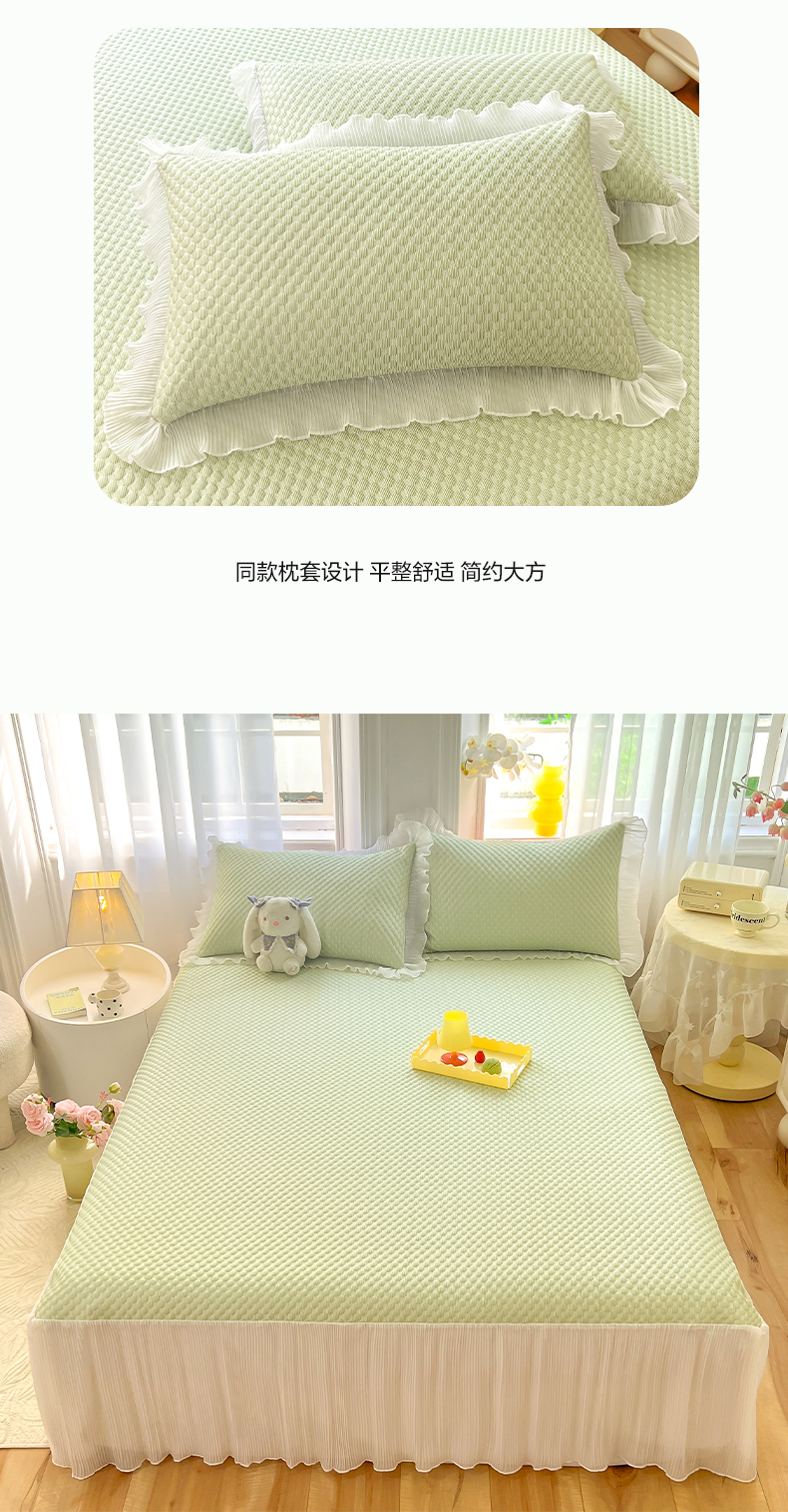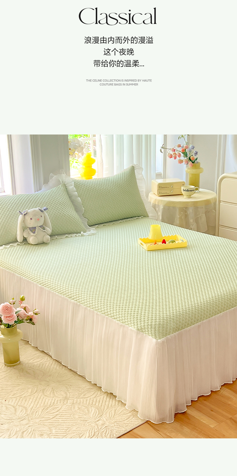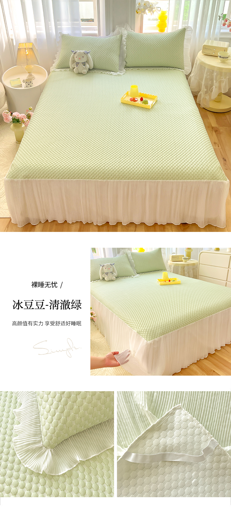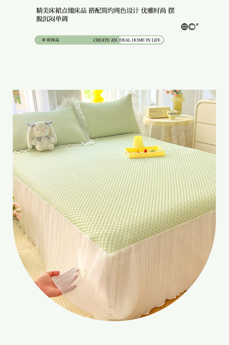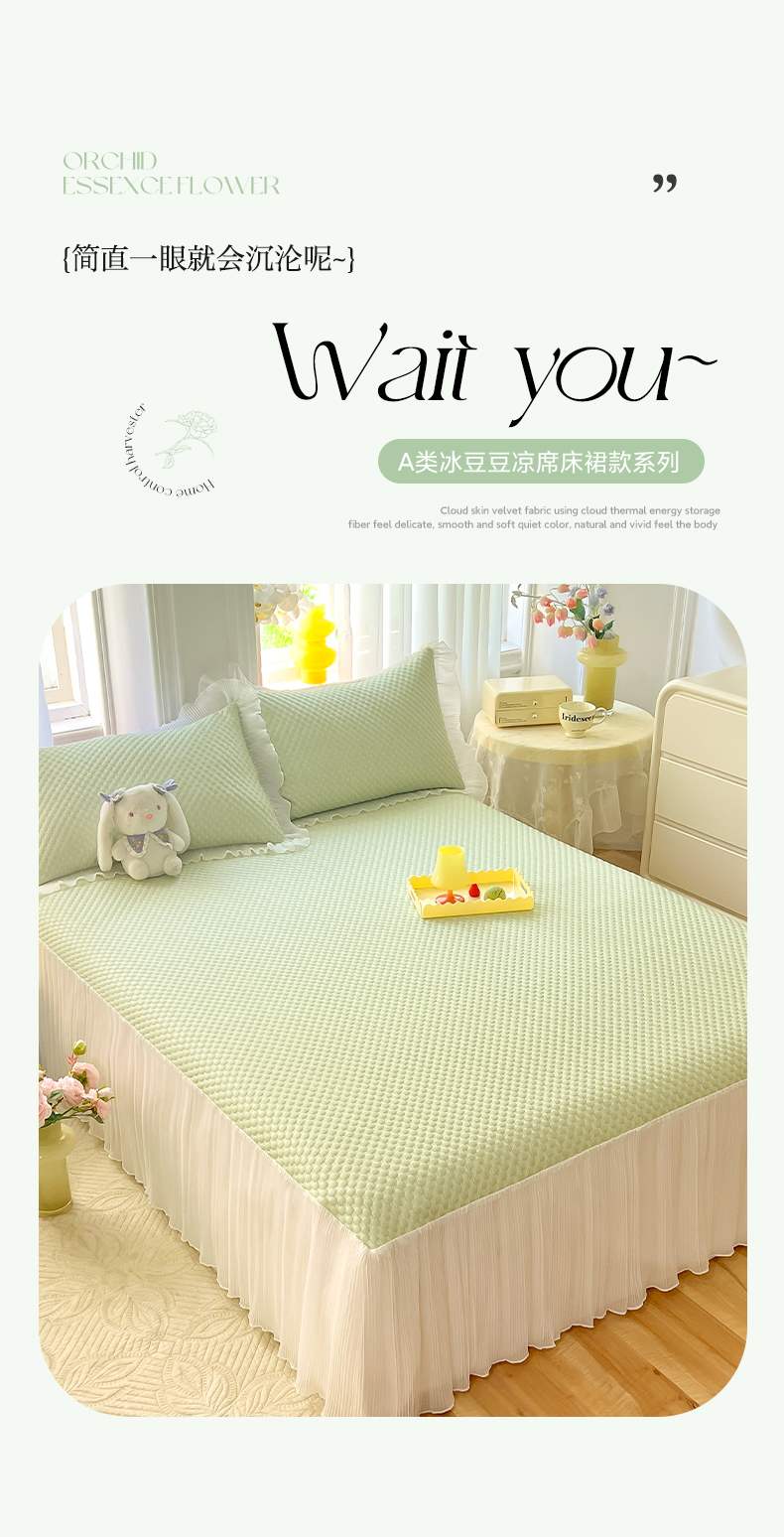 商品名称:逸尚阁 2025新款A类冰豆豆凉席床裙款系列 冰豆豆-清澈绿