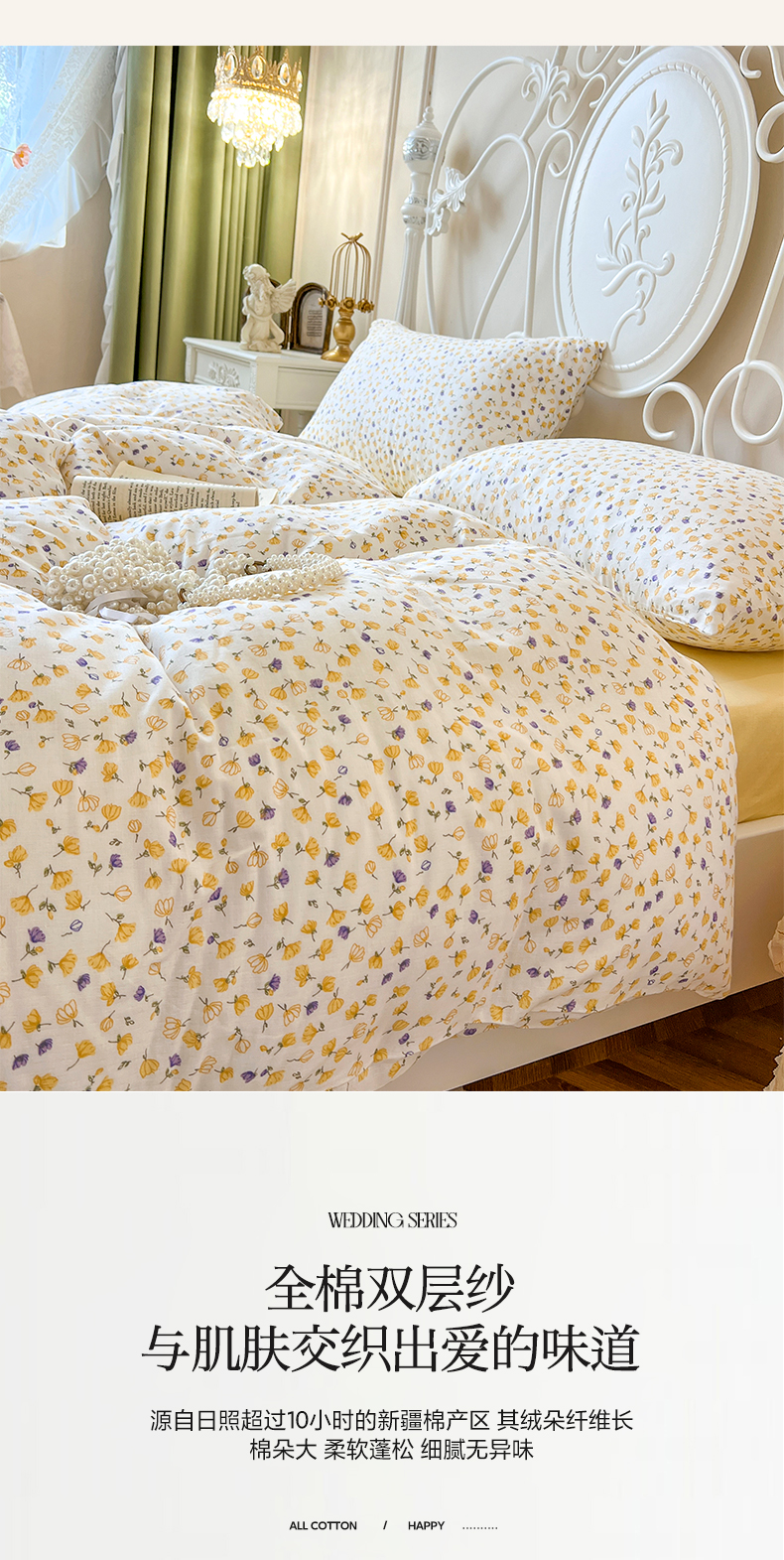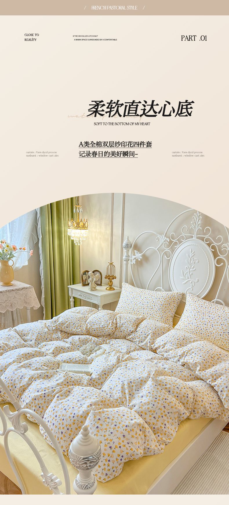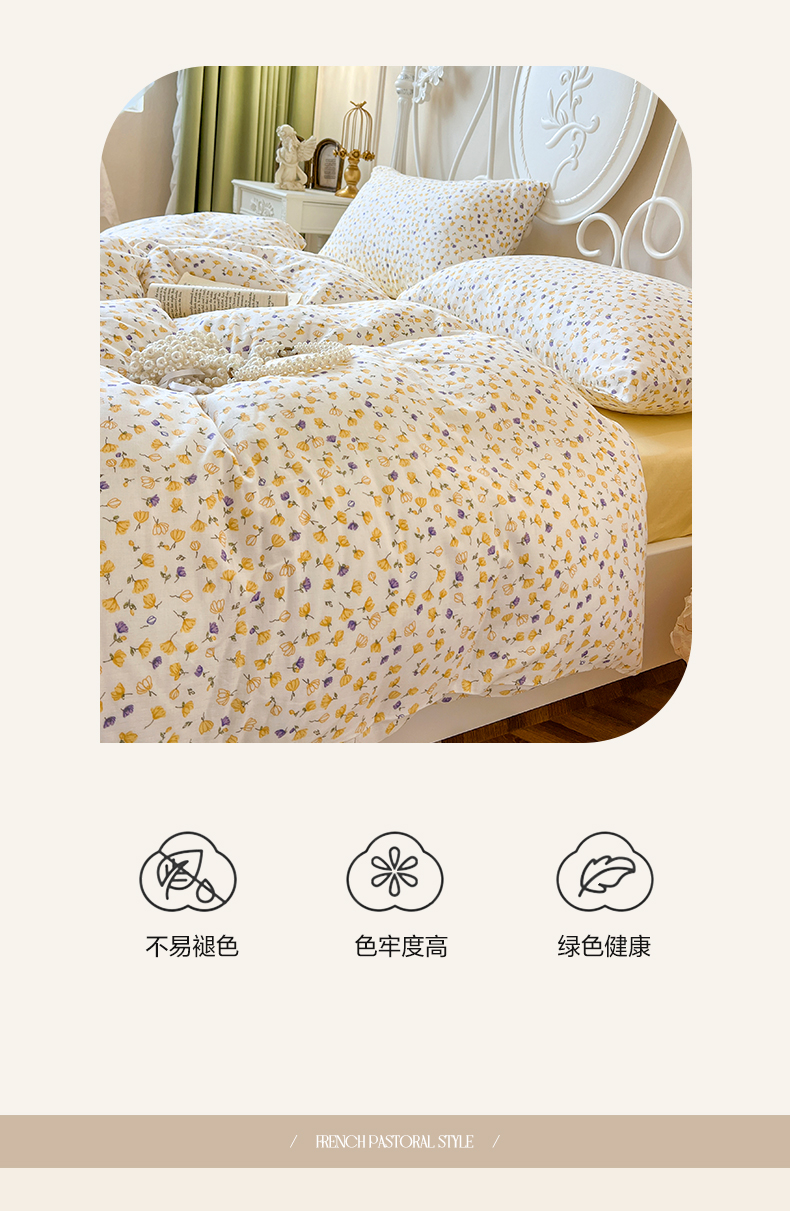 当前位置: 91家纺网 > 商品网购 > 床品套件 > 四件套 > 双层纱四件套 > 麒豆豆 2024款全棉双层纱四件套花间-黄