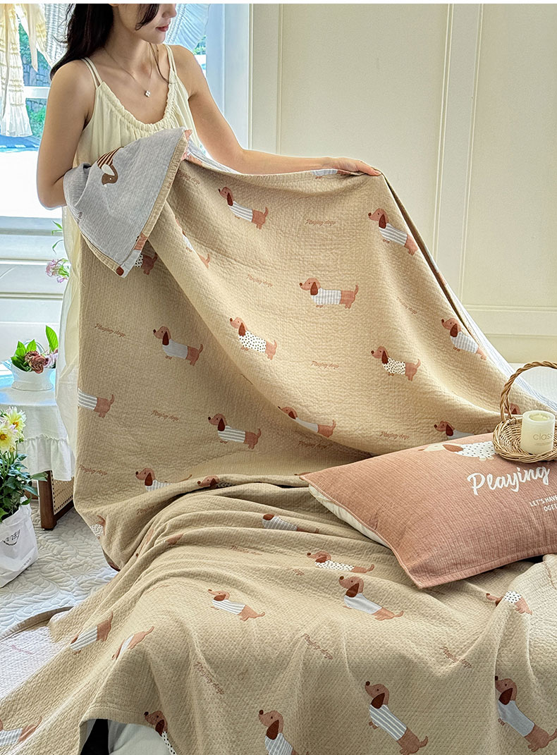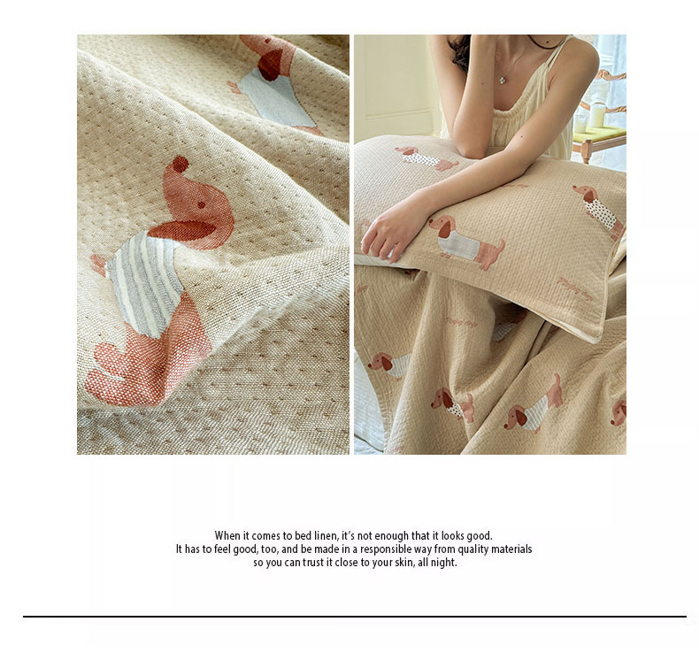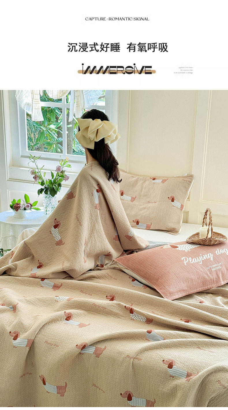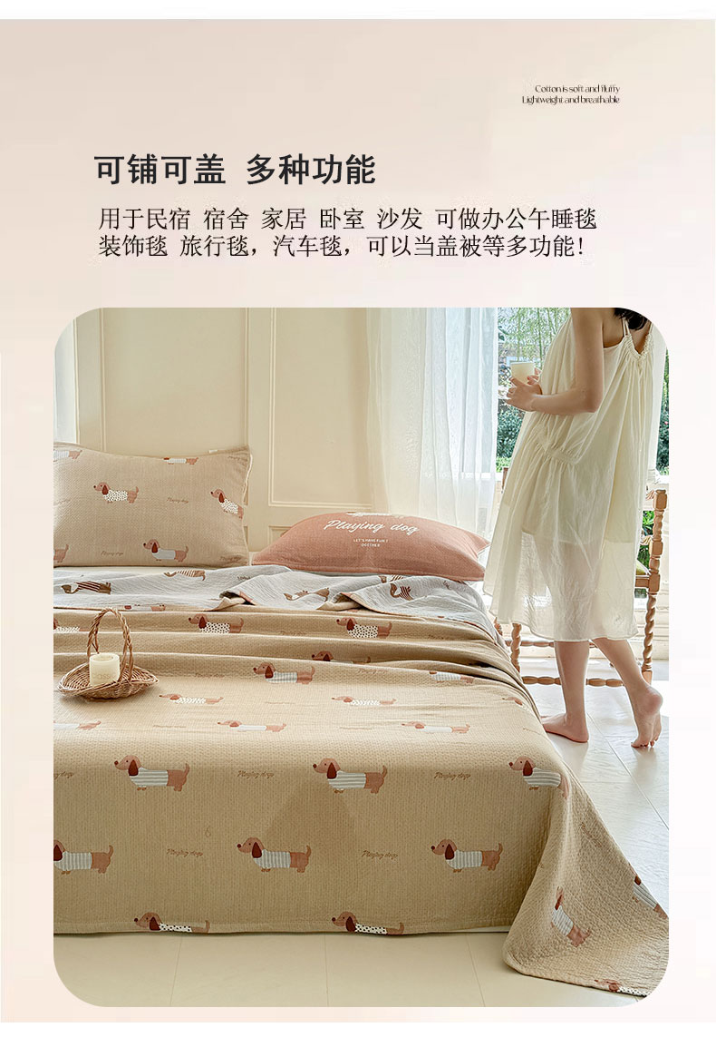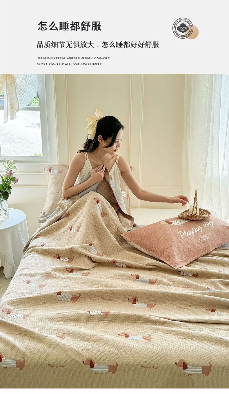商品名称:麻依 2024新款40s纱布床盖三件套 大耳狗