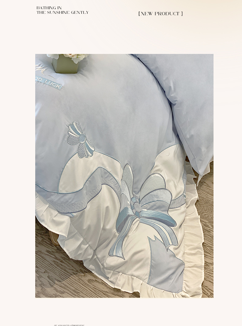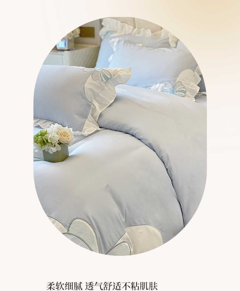 苏源家居 2024新款公主风亲肤棉刺绣四件套-甜心蝴蝶 甜心蝴蝶-蓝色