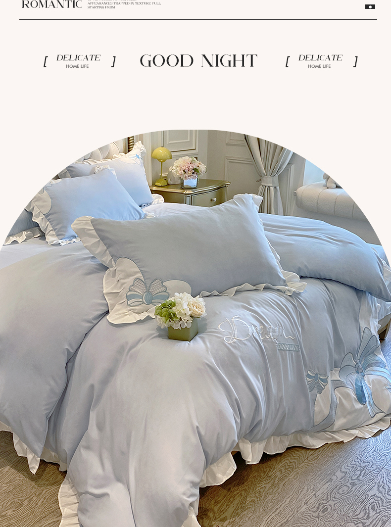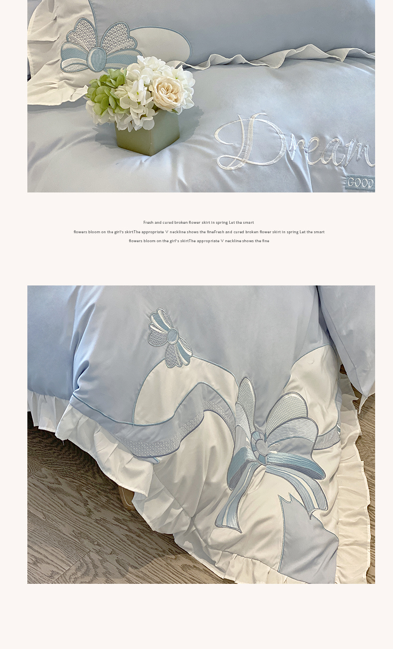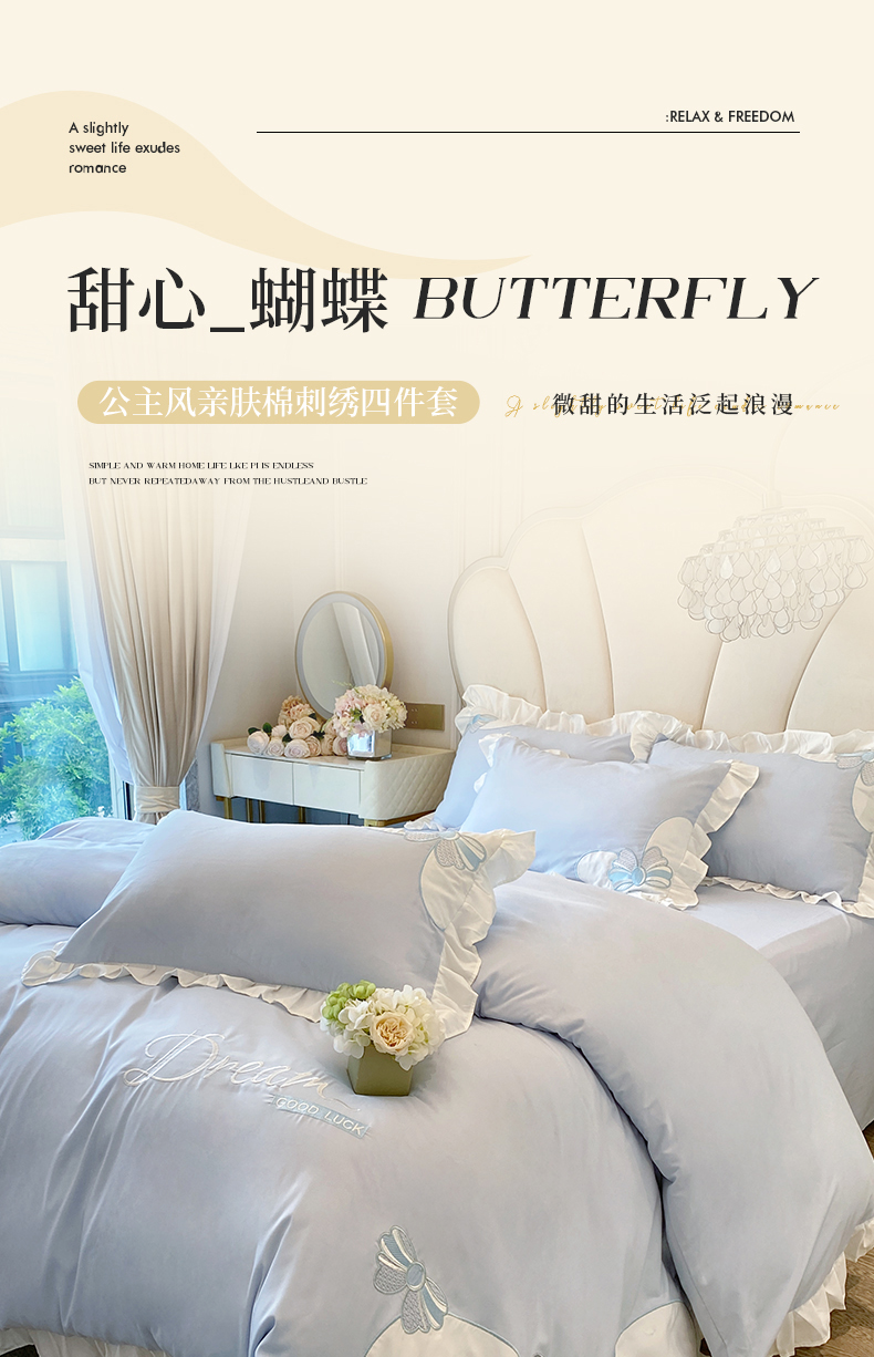 商品名称:苏源家居 2024新款公主风亲肤棉刺绣四件套-甜心蝴蝶 甜心蝴蝶-蓝色