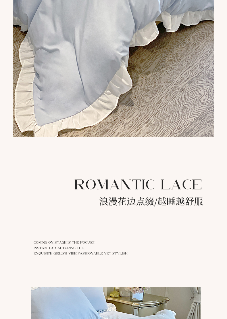 (总)苏源家居 2025新款韩式大花边ins风妮可公主风四件套,军绿色,白色,粉色,黑色,卡其色,蓝色