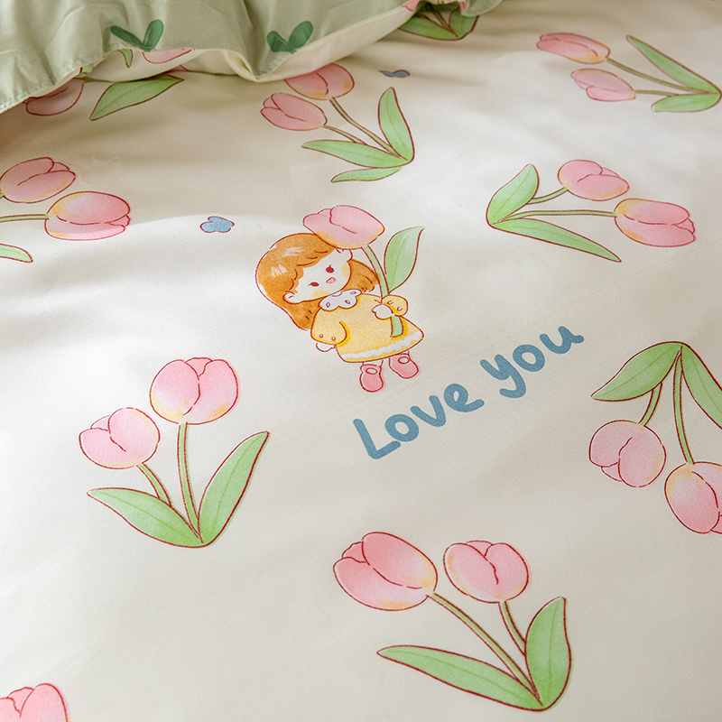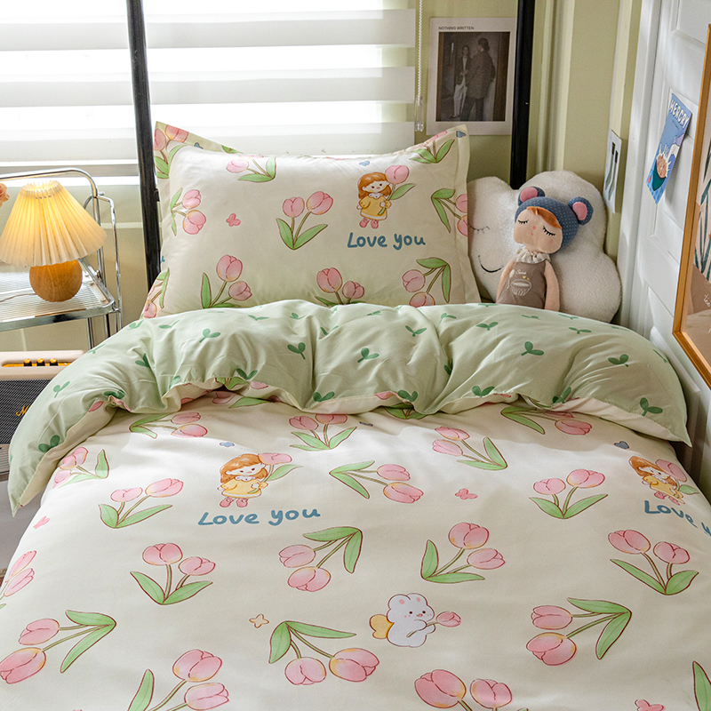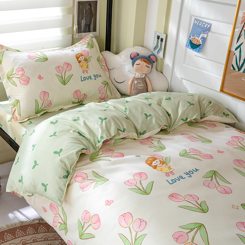 商品名称:港岛妹妹 2024新款芦荟棉印花四件套四件套学生床宿舍图 繁花
