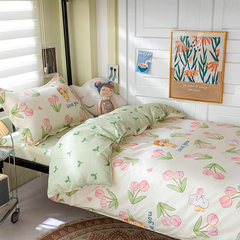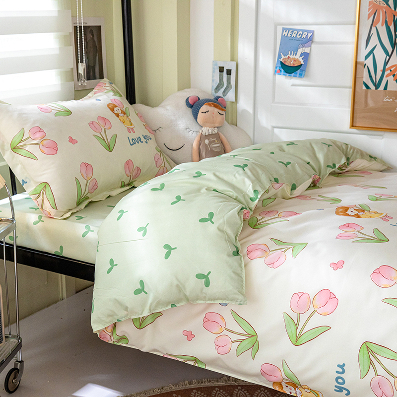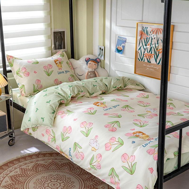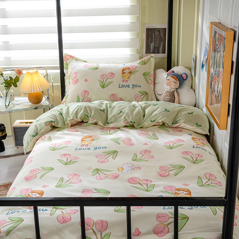 港岛妹妹 2024新款芦荟棉印花四件套四件套学生床宿舍图 繁花