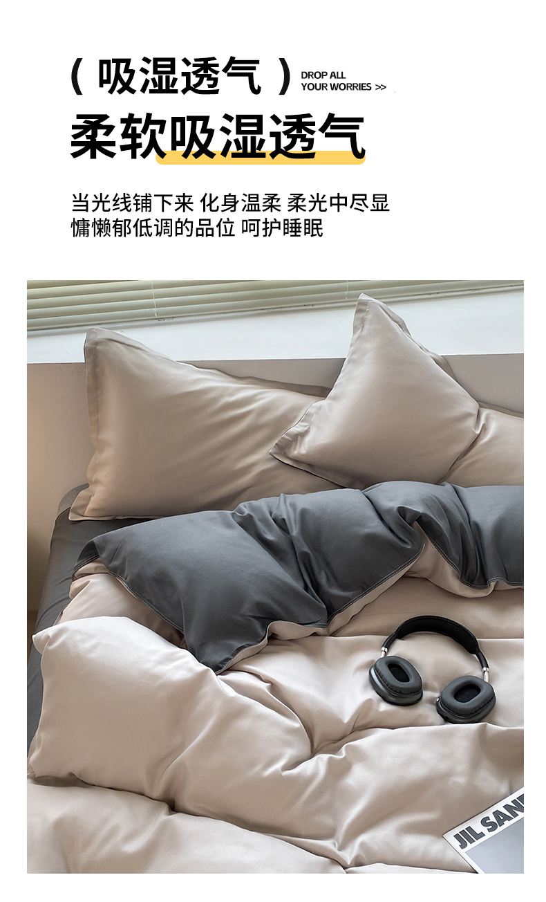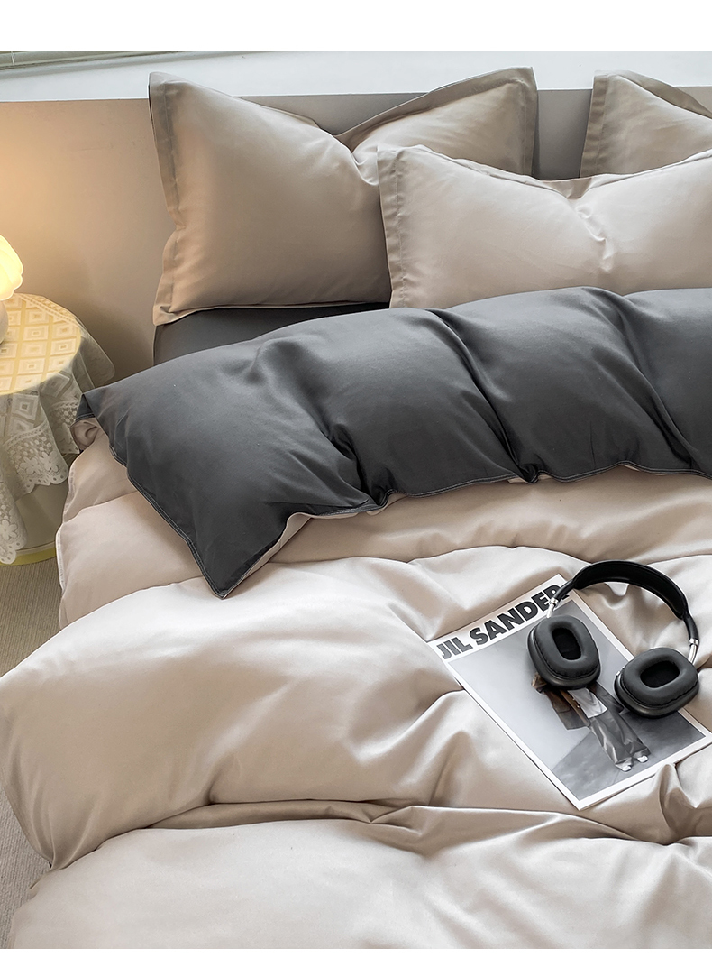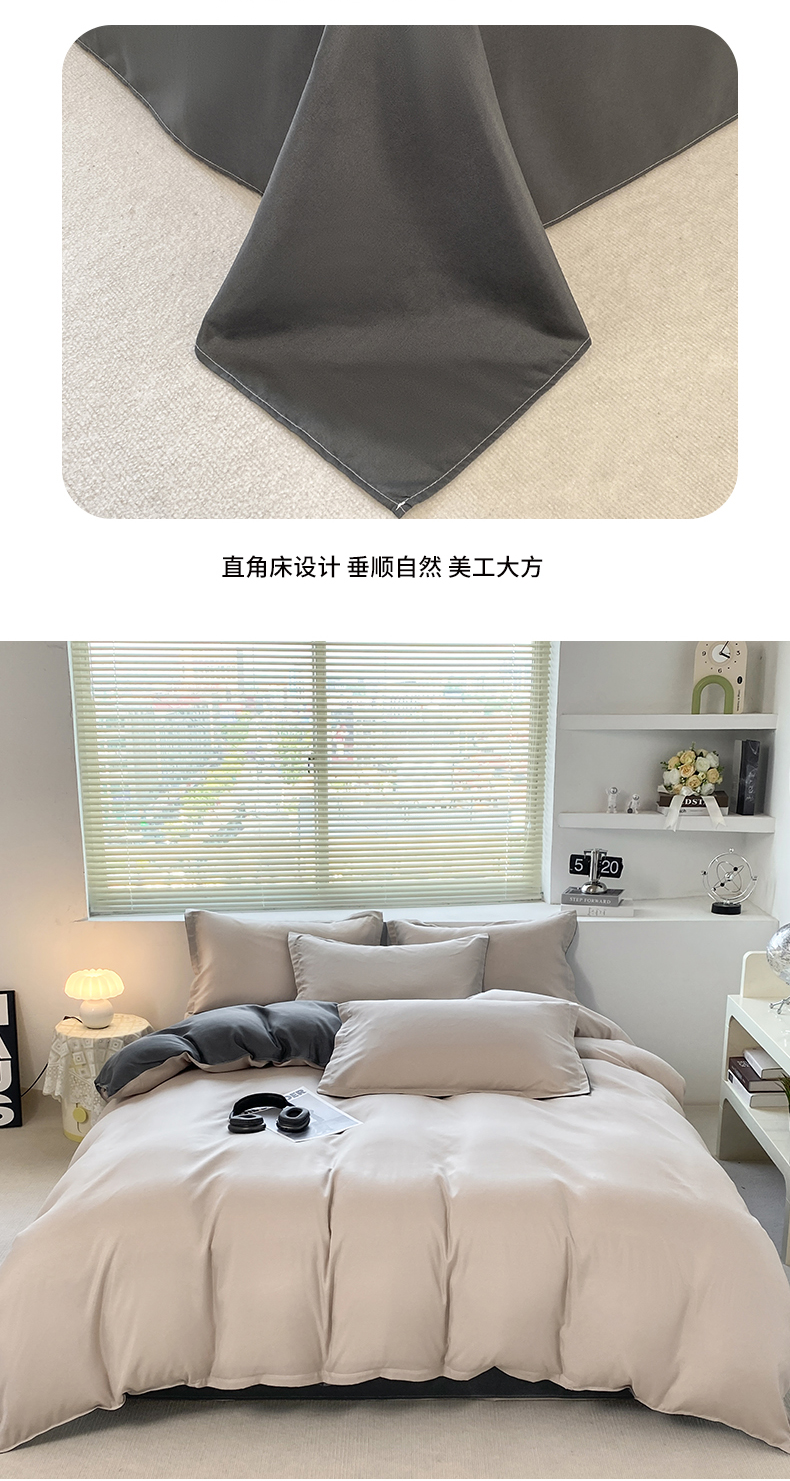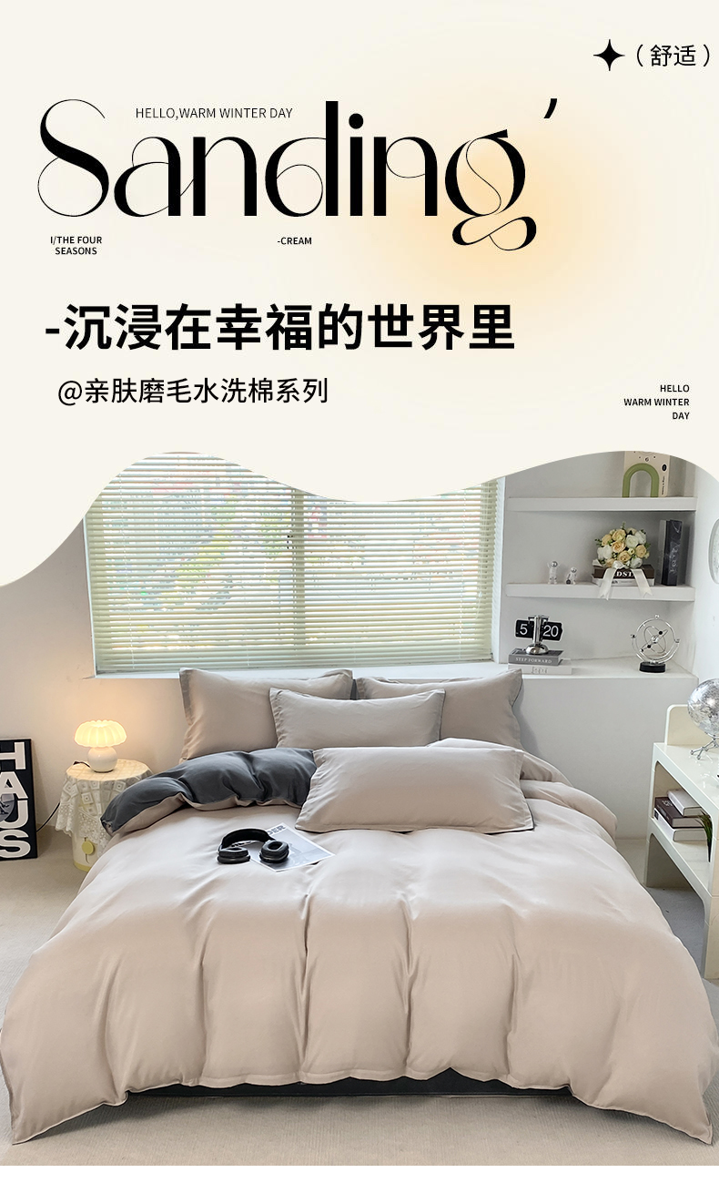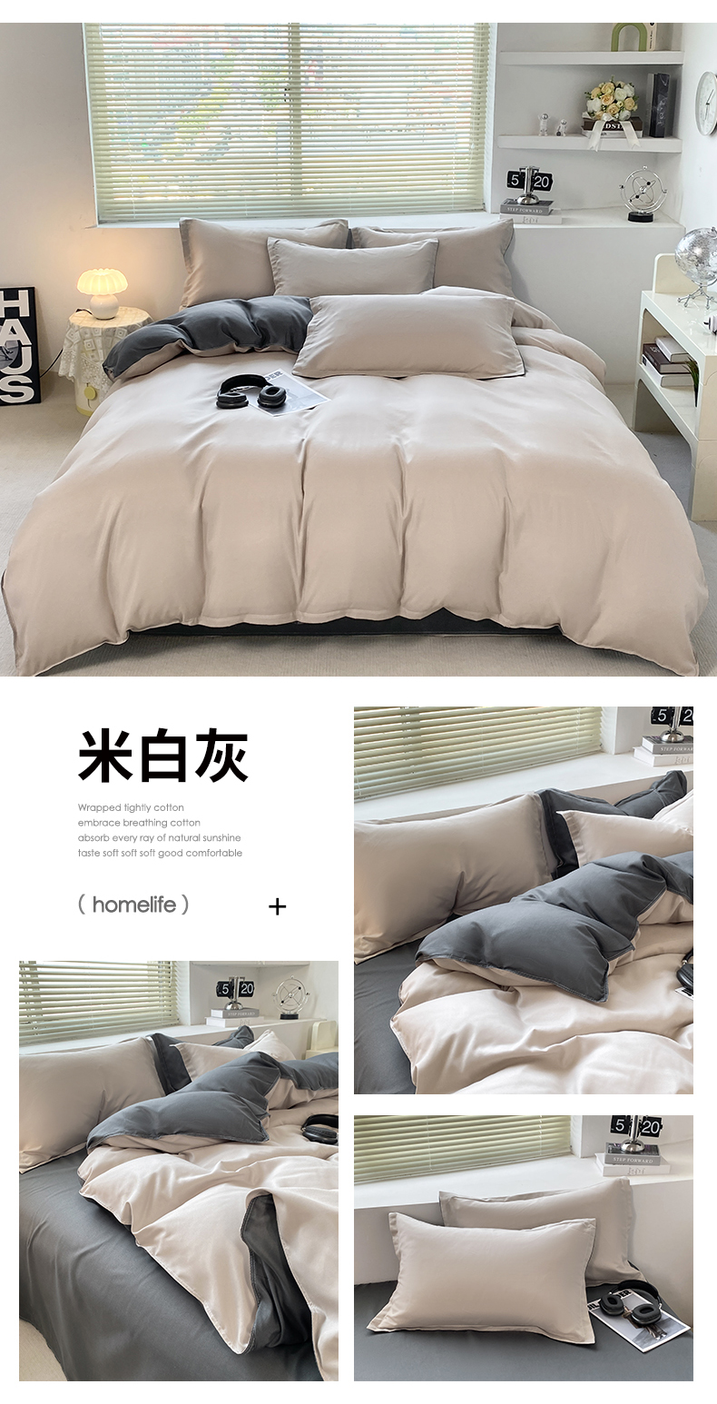 商品名称:米瑞娜 2024新款纯色双拼亲肤磨毛水洗棉四件套 米白灰