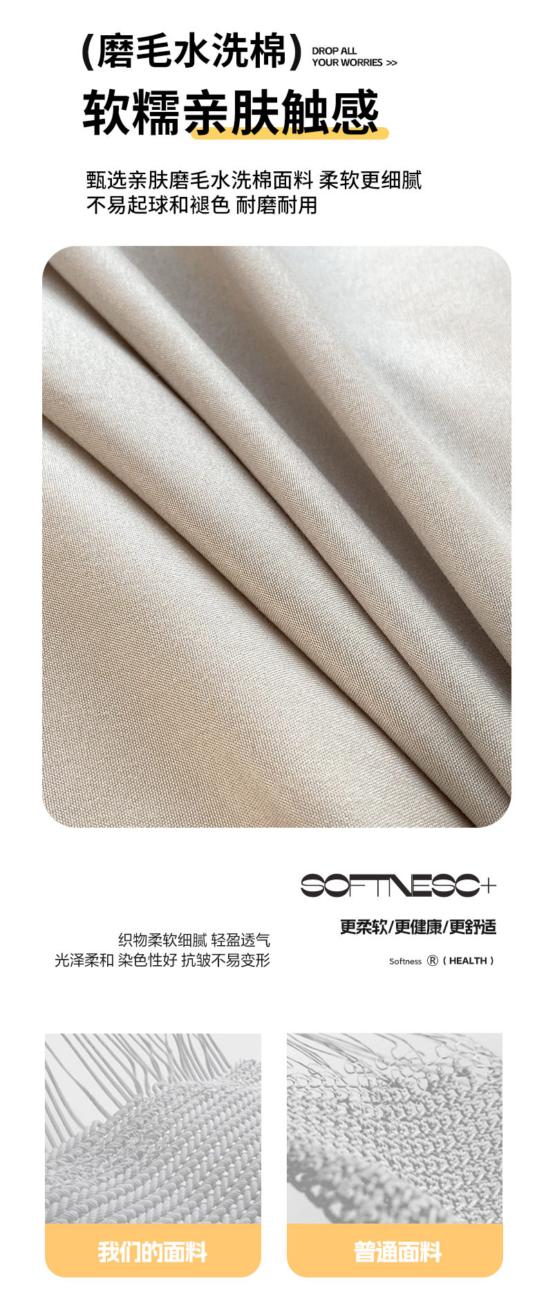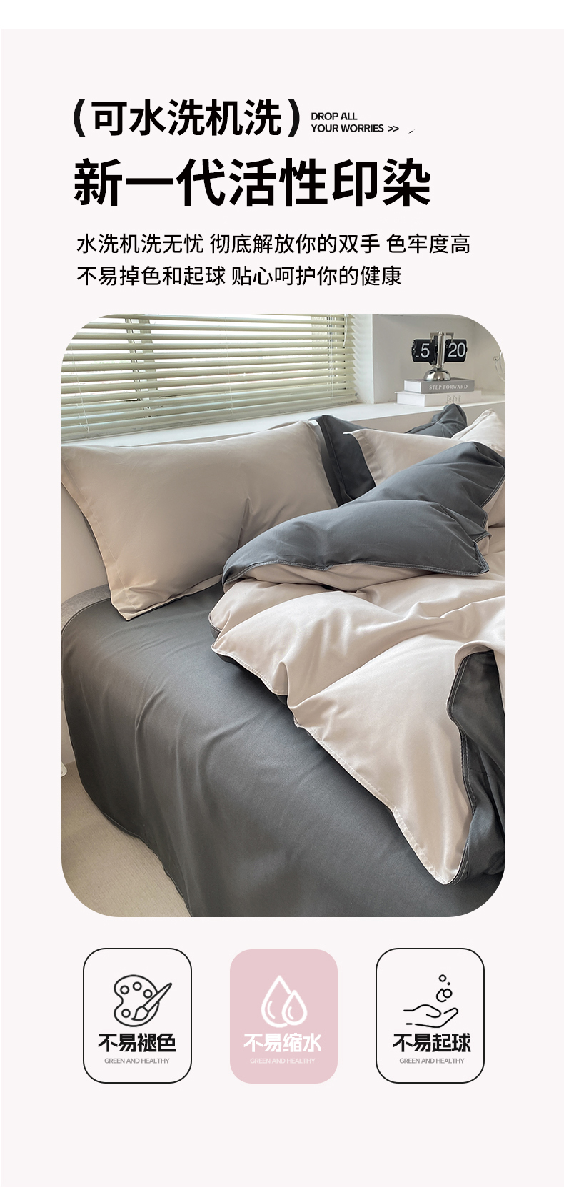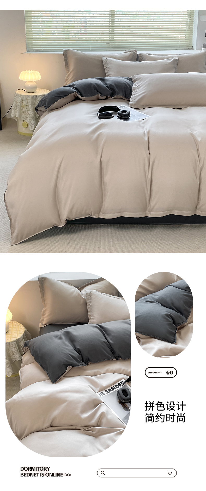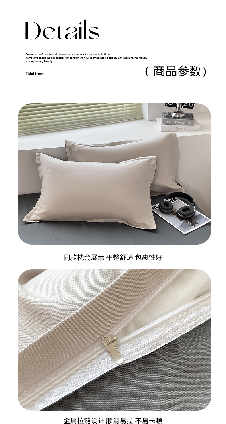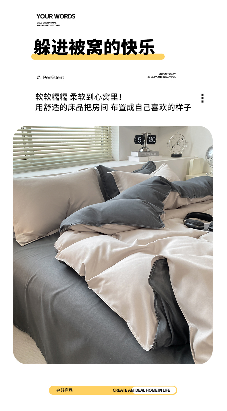商品名称:米瑞娜 2024新款纯色双拼亲肤磨毛水洗棉四件套 米白灰
