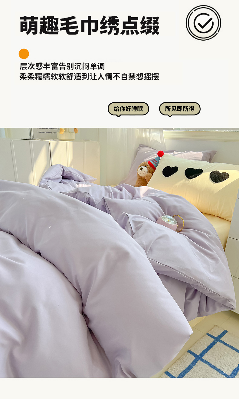 当前位置: 91家纺网 > 商品网购 > 床品套件 > 四件套 > 其它四件套 > 眠帛家居 2024新款A类奶油风小清新毛巾绣暖心系列水洗棉床上用品三件套四件套 暖心-香芋紫
