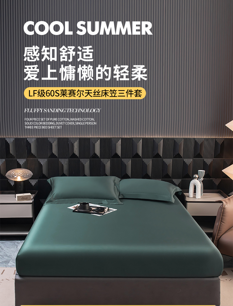• 91家纺网 家纺一手货源 找家纺 好阁家纺 2024新款进口LF级60S莱赛尔莱赛尔床笠两件套三件套 灰紫
