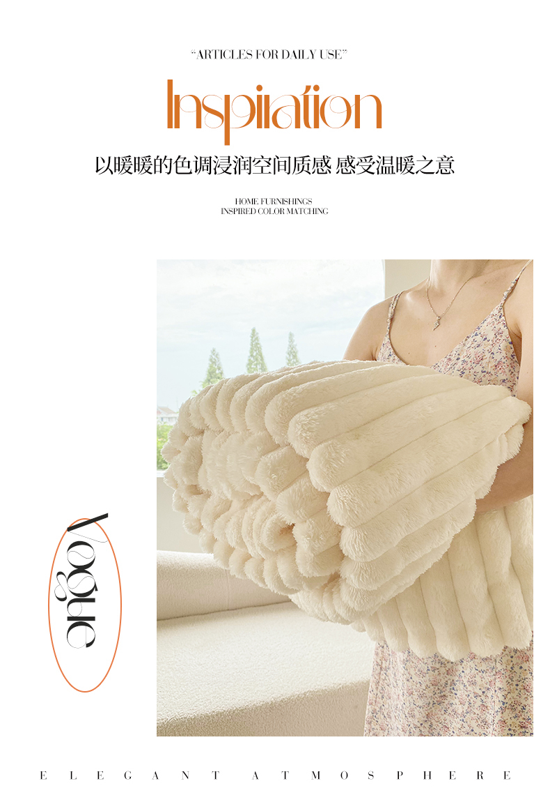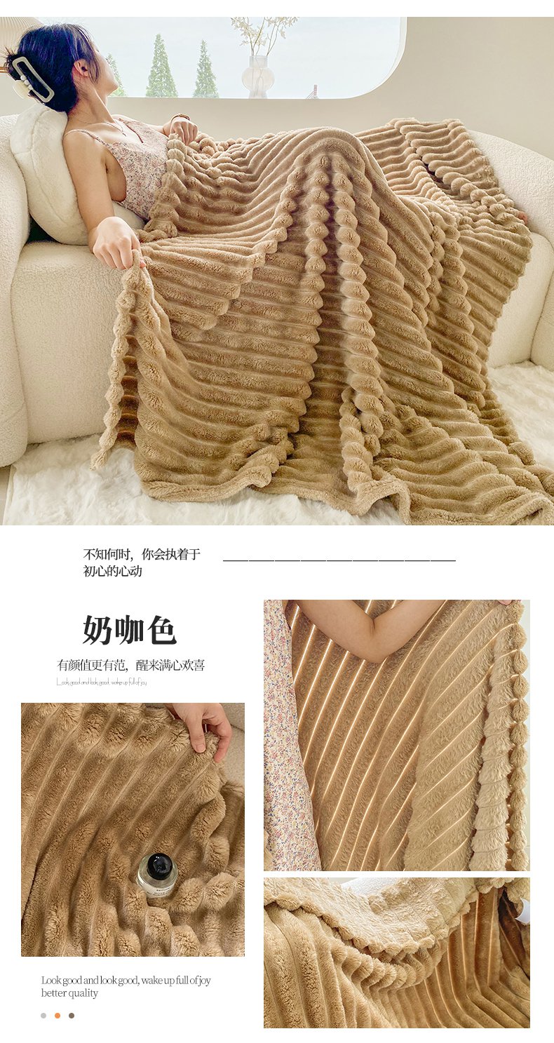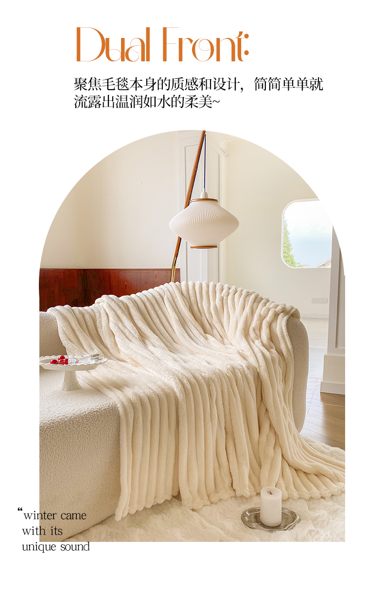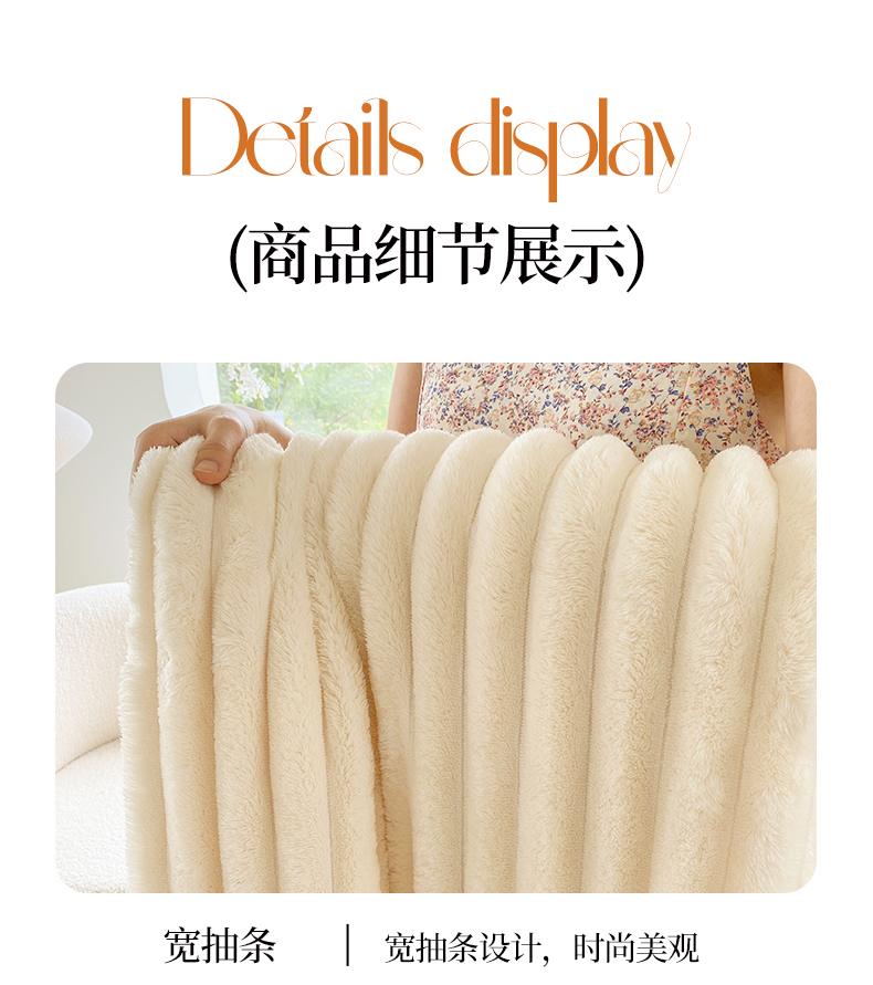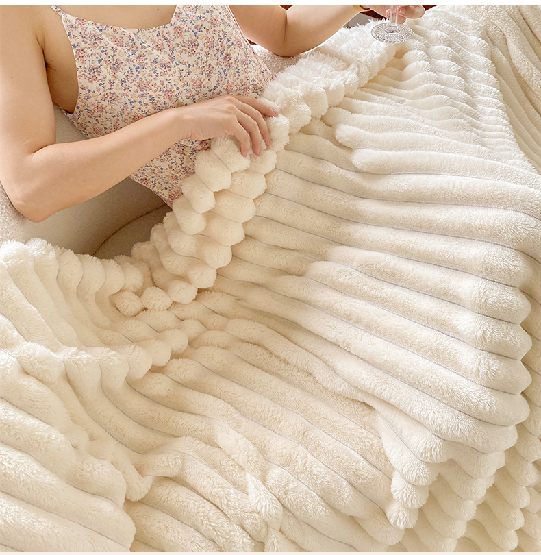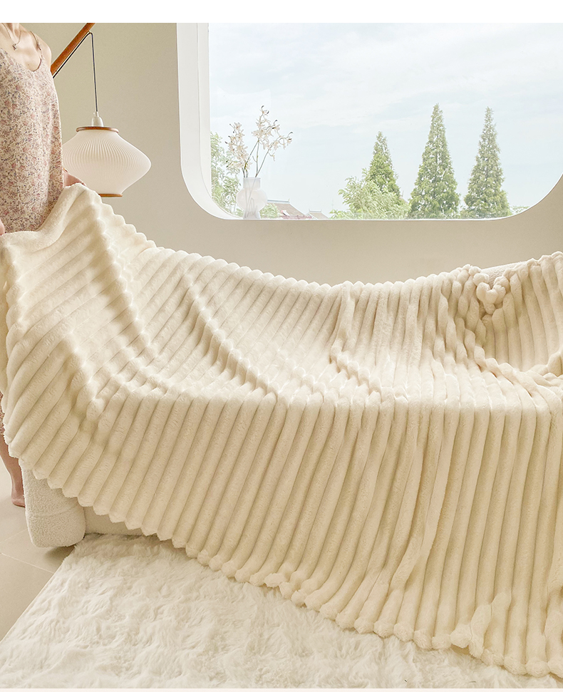 商品名称:潮邦创意家居 2025新款双面340G 4.5公分大抽条立体绒毯毛毯盖毯可供跨境电商可压缩 宽条奶油白