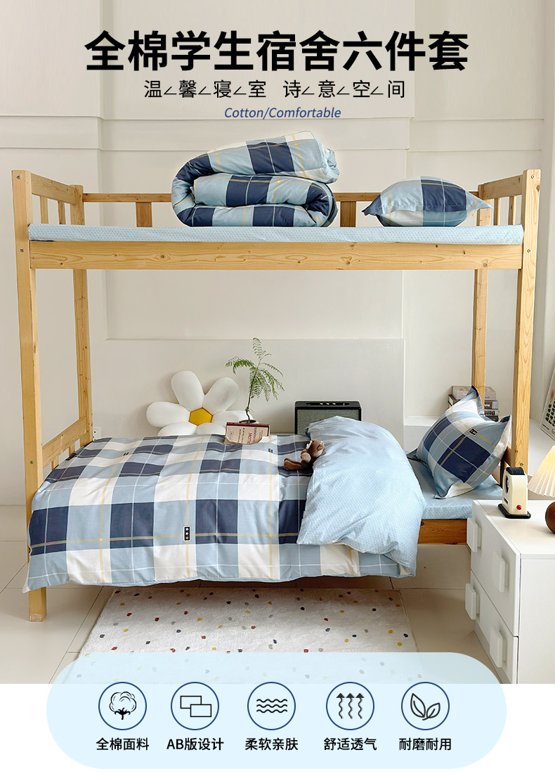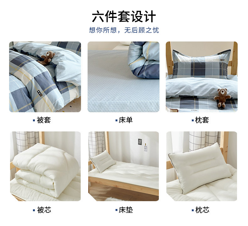 商品名称:怡家居 2024新款开学季学生宿舍六件套大礼包 青春格