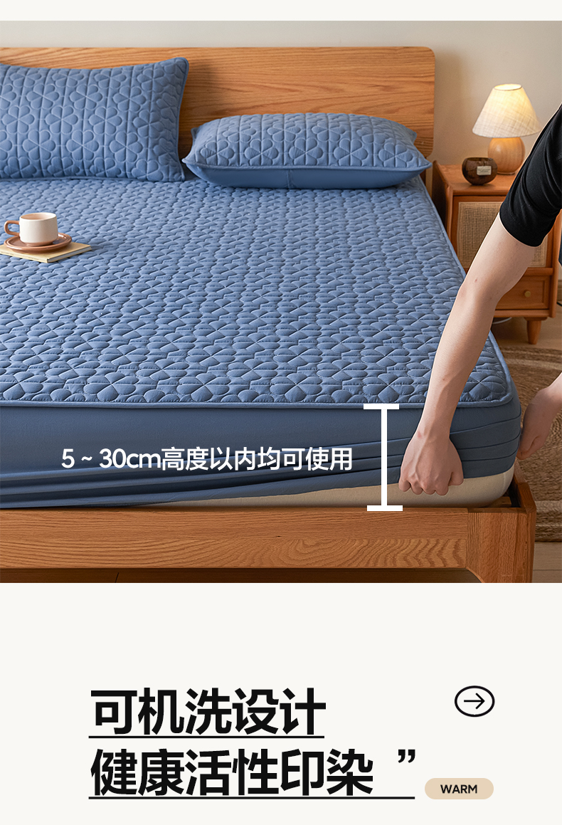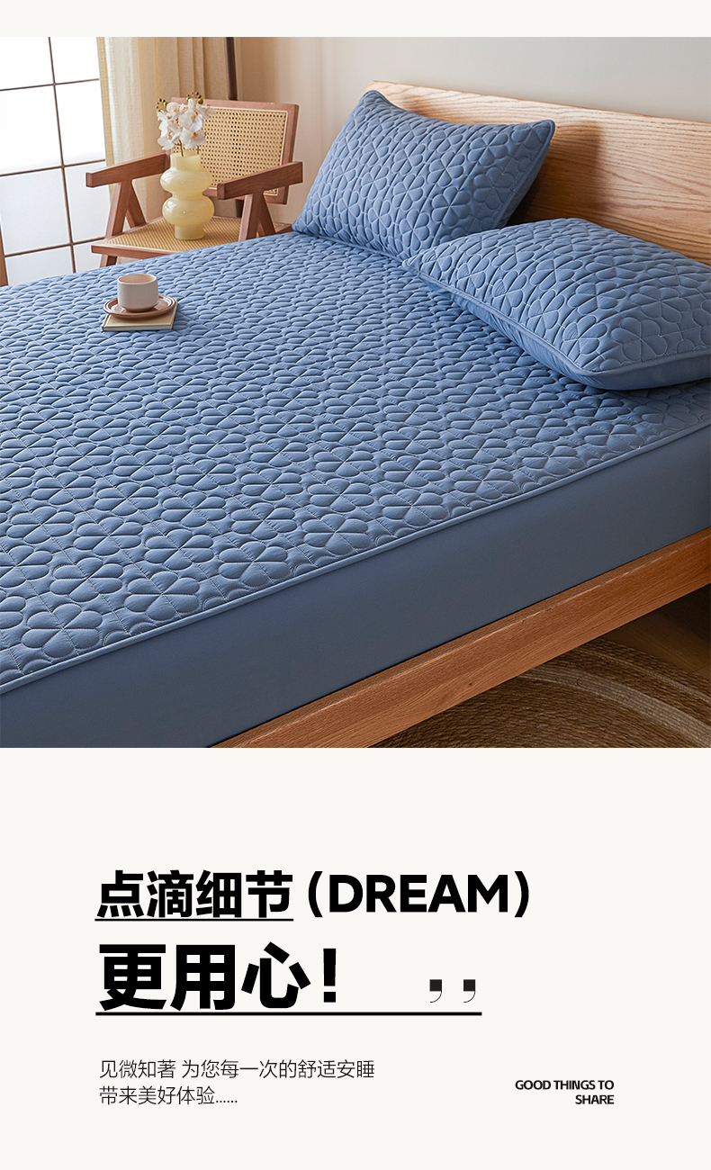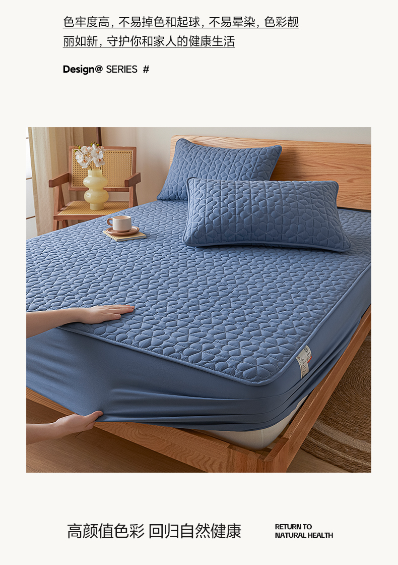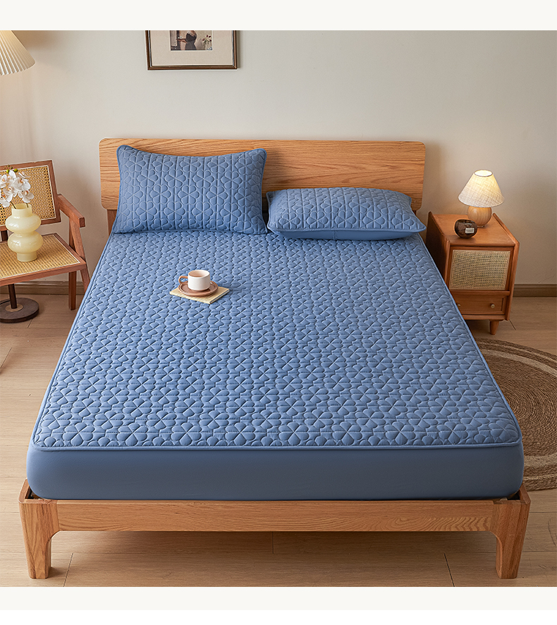 芬晴家纺 2024新款A类大豆夹棉防水床笠-繁花 繁花-雾蓝