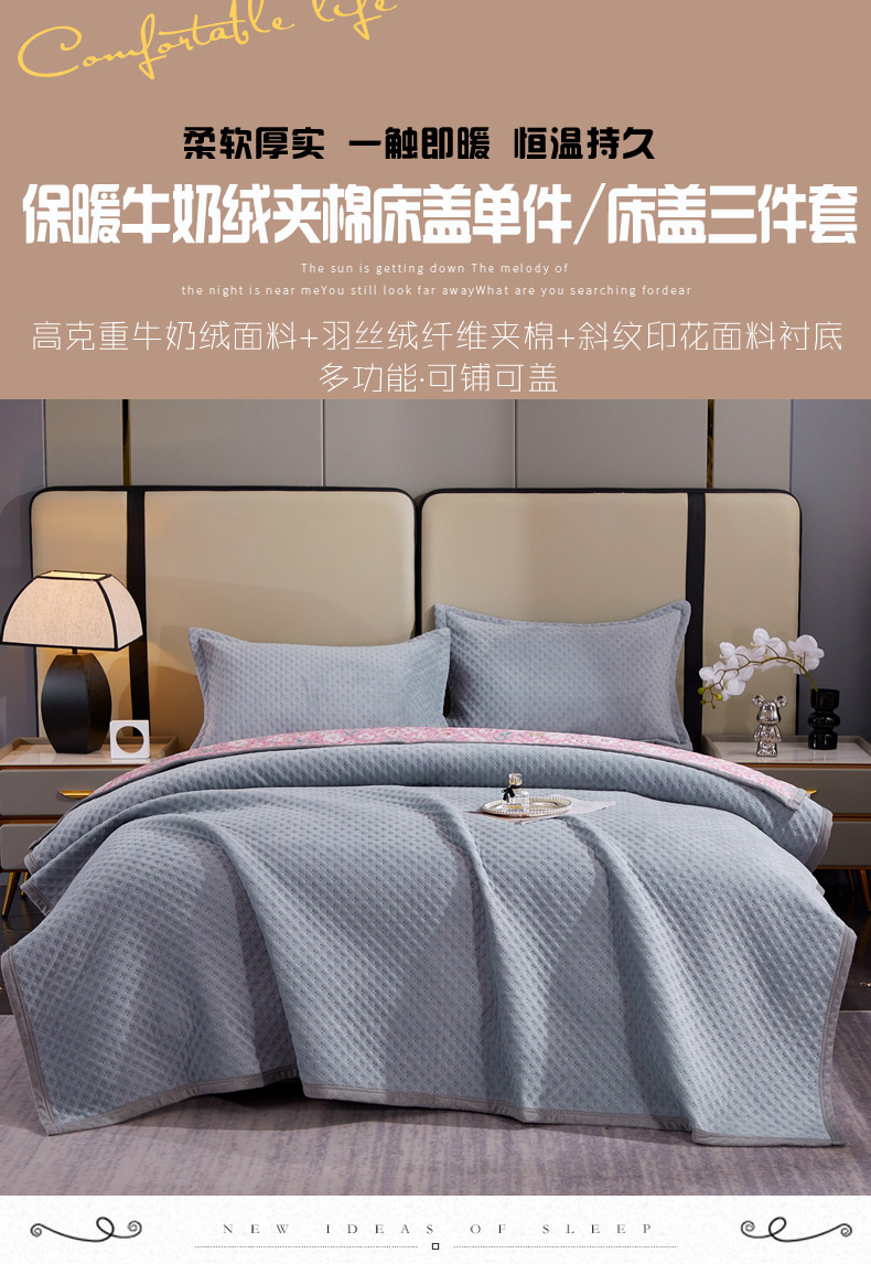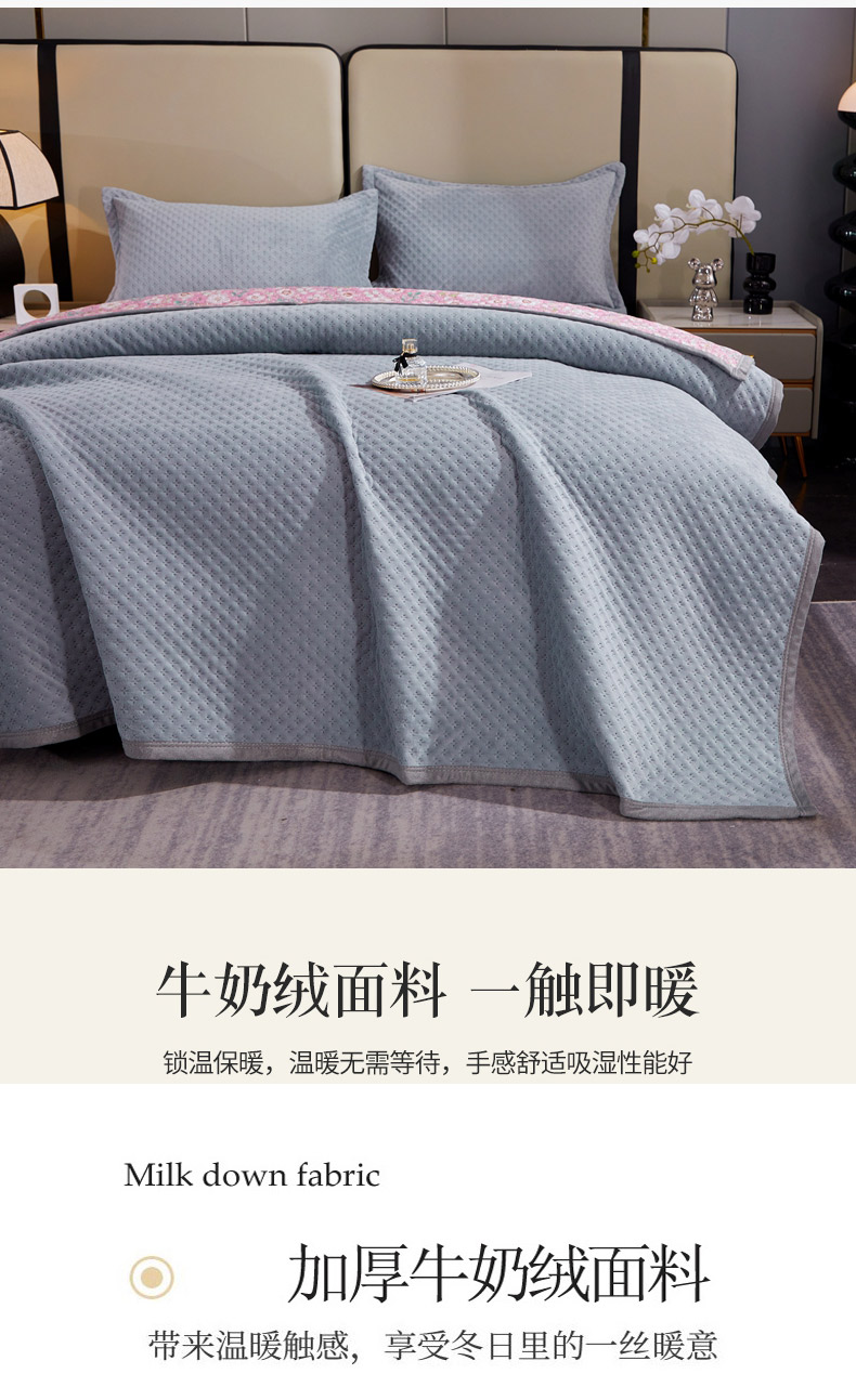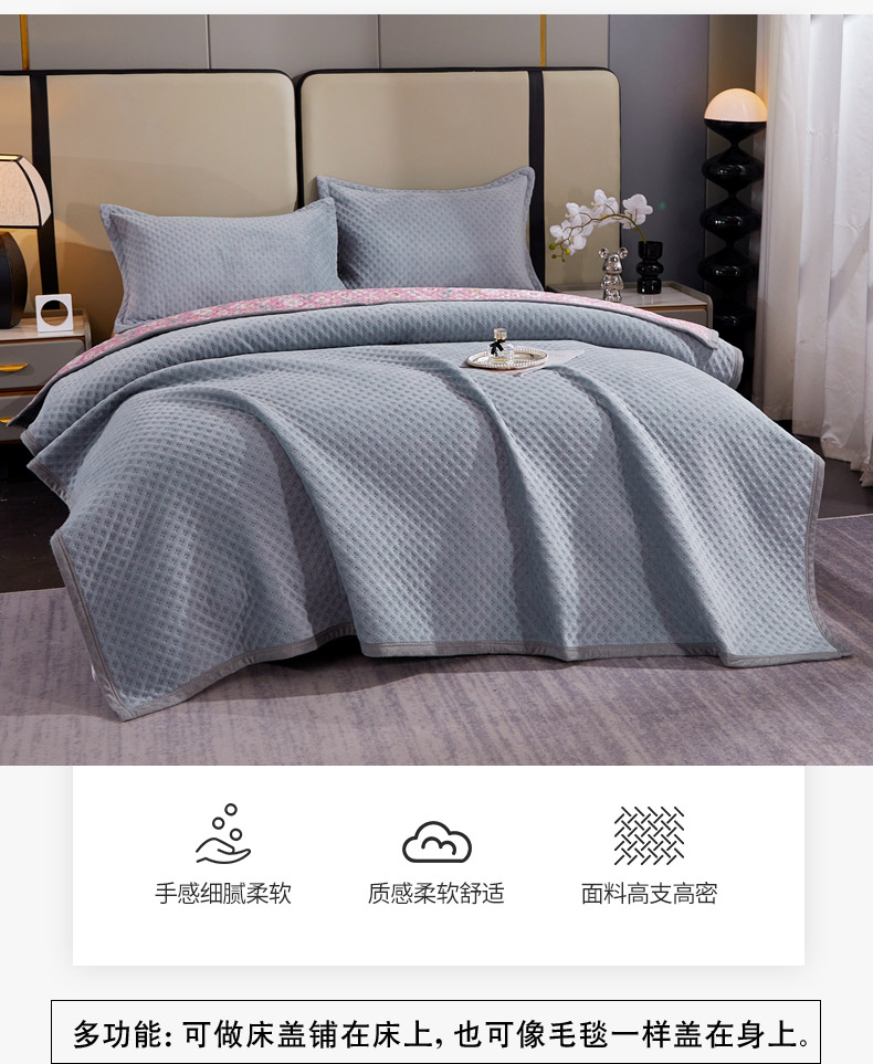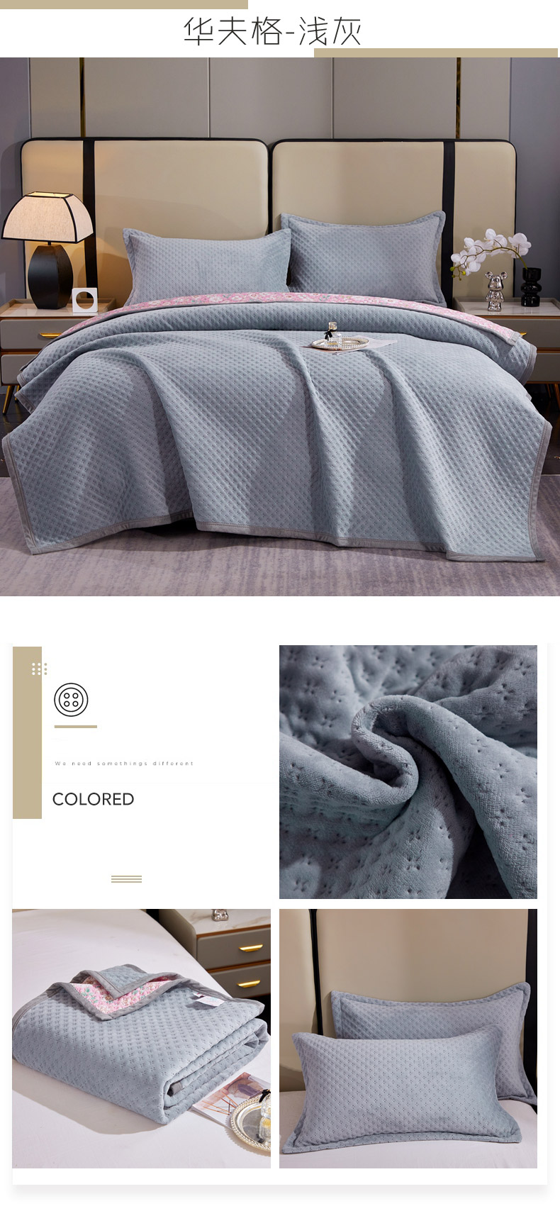 • 91家纺网 家纺一手货源 找家纺 晶缦家纺 2024新款华夫格牛奶绒床盖三件套 华夫格-浅灰