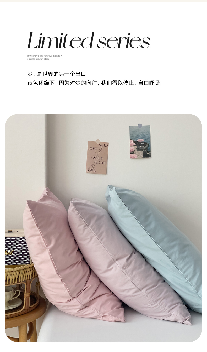 漫时光 2025新款60支A类新疆长绒棉陶瓷磨毛单枕套 安静蓝