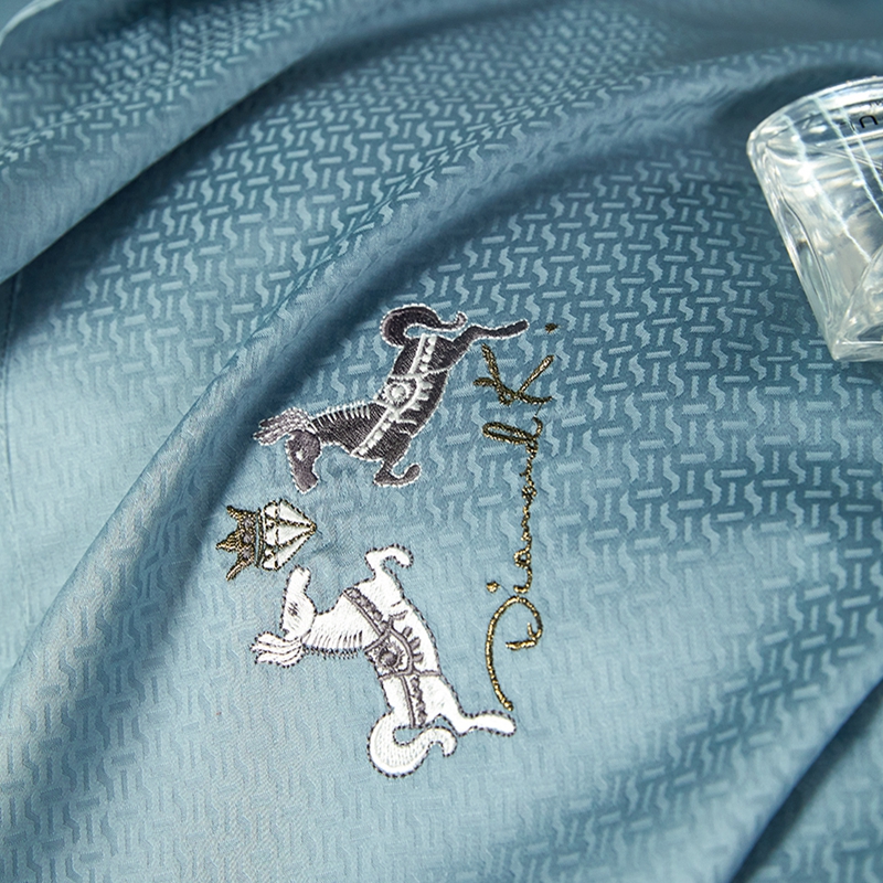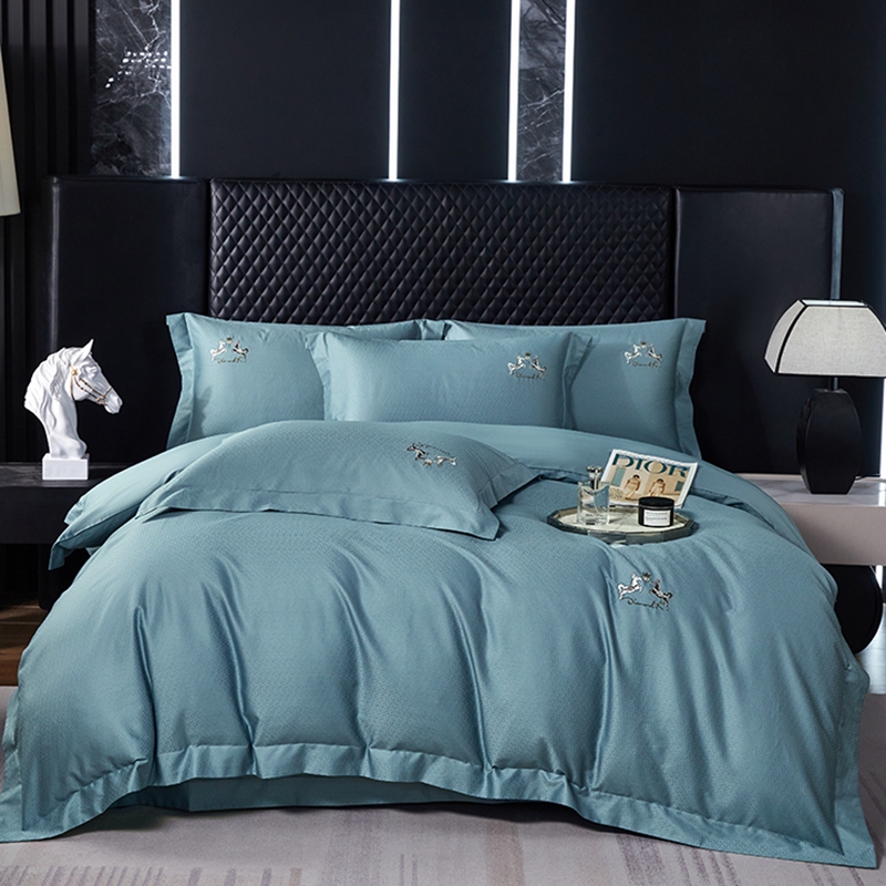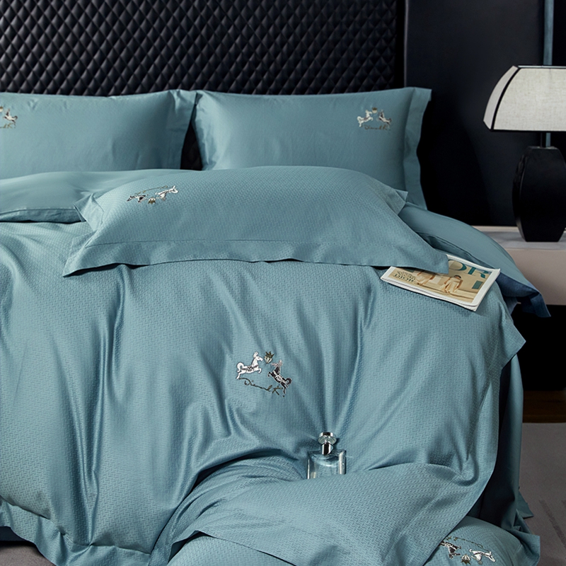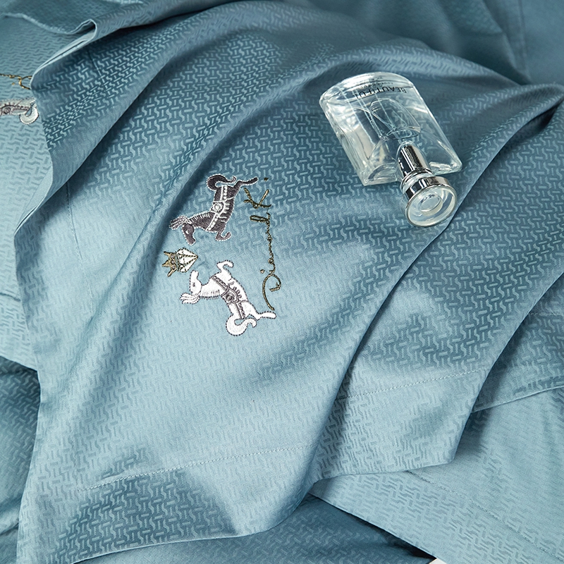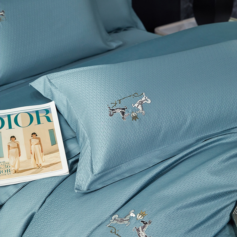 淳绵家居 2024新款50*50S双股长绒棉提花刺绣四件套 蒂梵-宾利蓝
