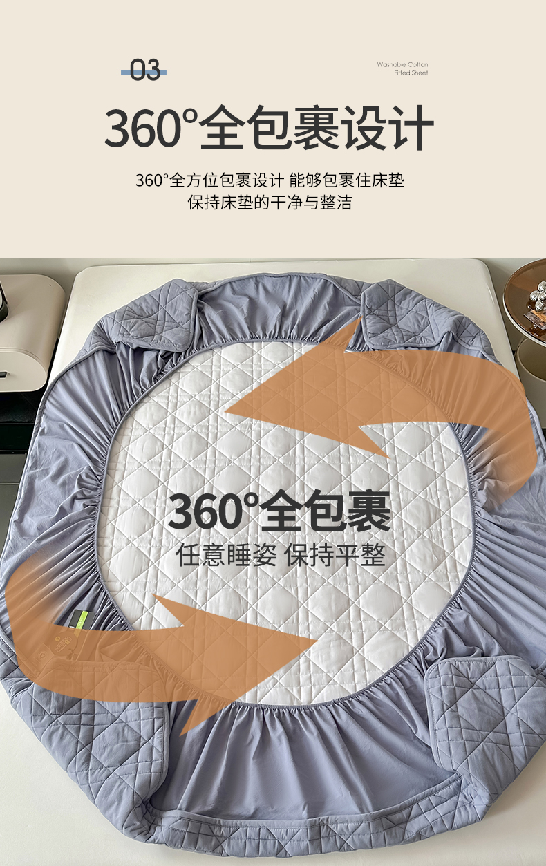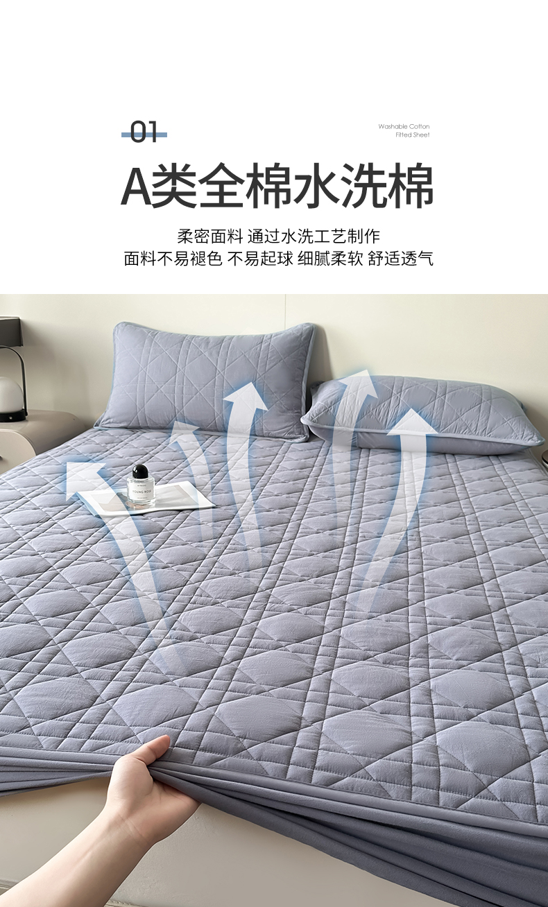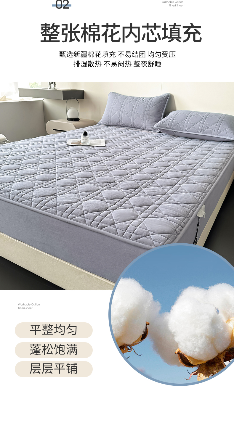 (总)3C 2025新款100支全棉抗菌夹棉床笠,韵律 白,韵律 灰