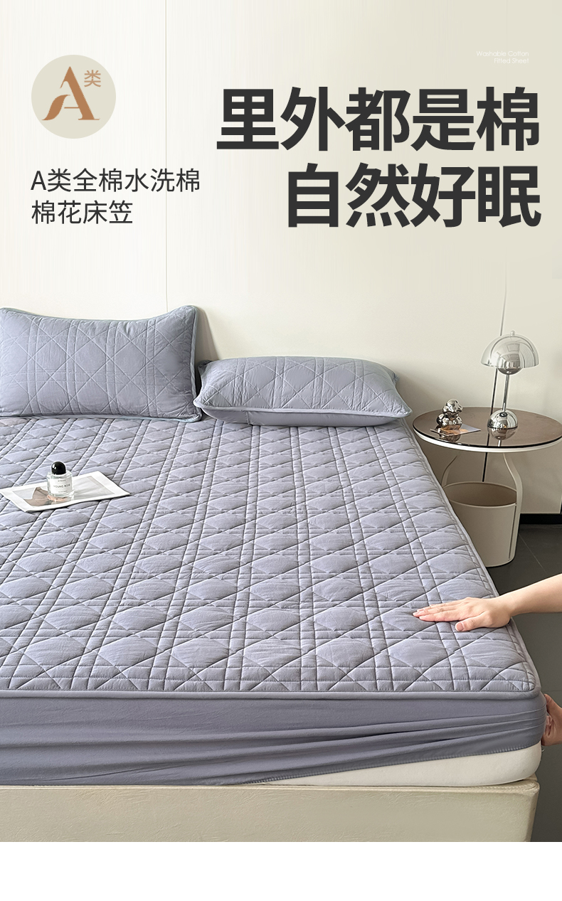 3C 2024新款A类全棉水洗棉棉花床笠 牛仔蓝-