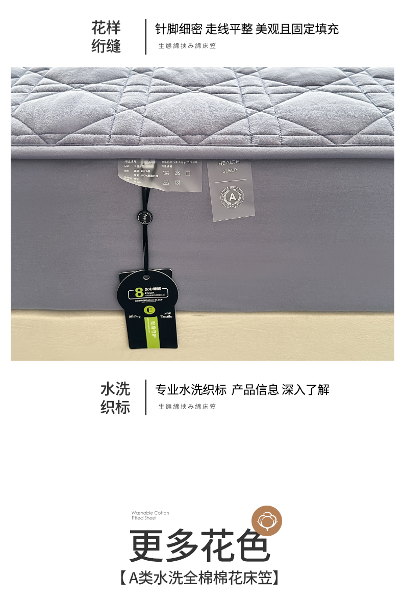 • 91家纺网 家纺一手货源 找家纺 (总)3C 2025新款100支全棉抗菌夹棉床笠,韵律 白,韵律 灰