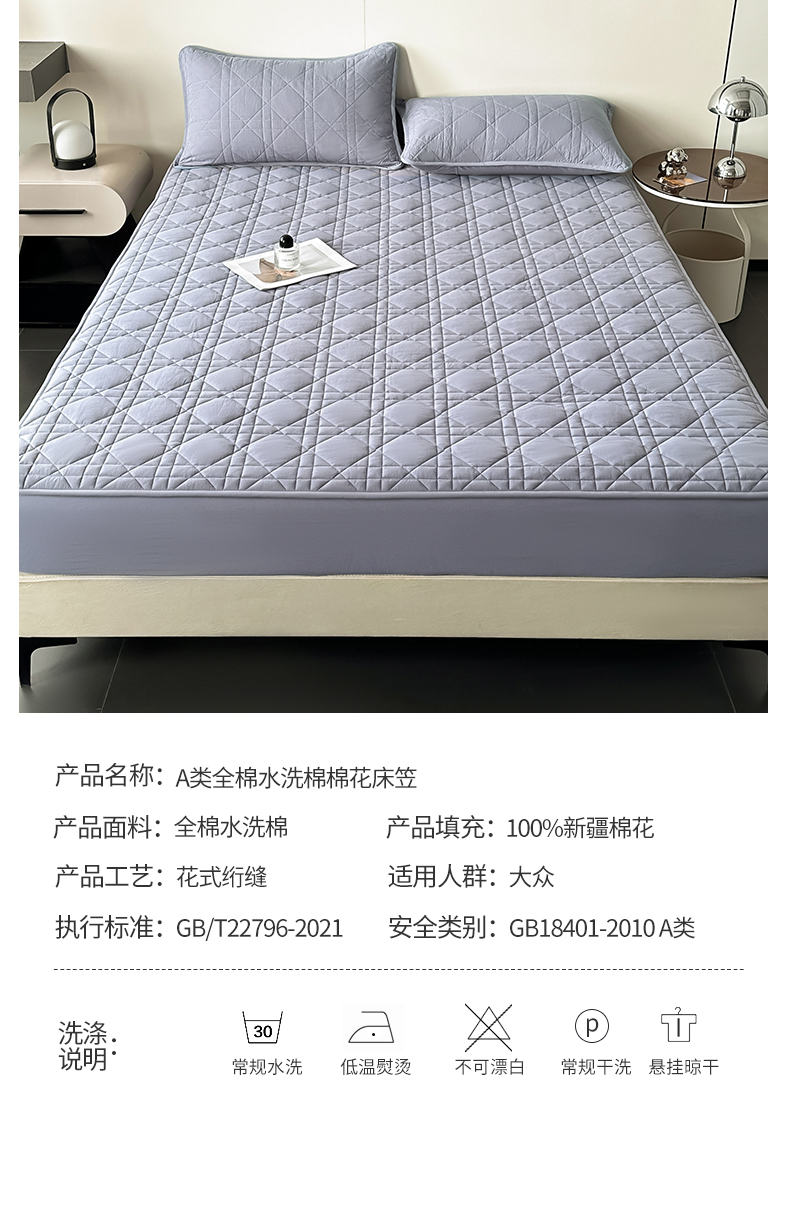 • 91家纺网 家纺一手货源 找家纺 3C 2024新款A类全棉水洗棉棉花床笠 牛仔蓝-