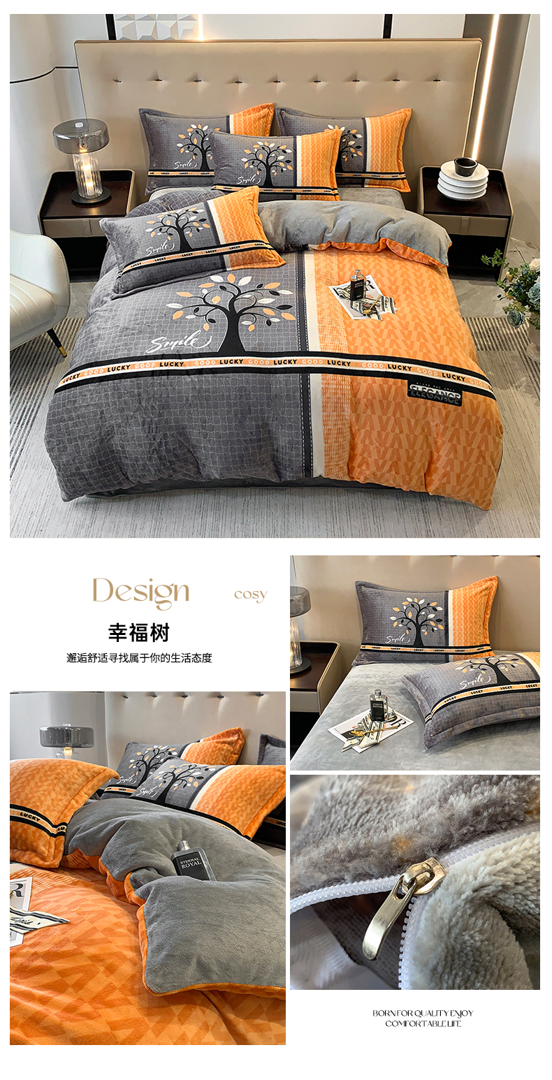 商品名称:喜梦缘 2025新款大版花卉牛奶绒四件套 幸福树
