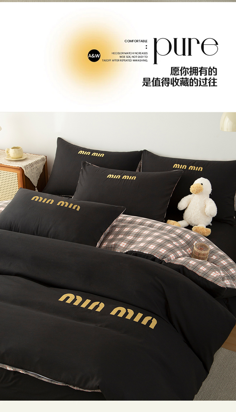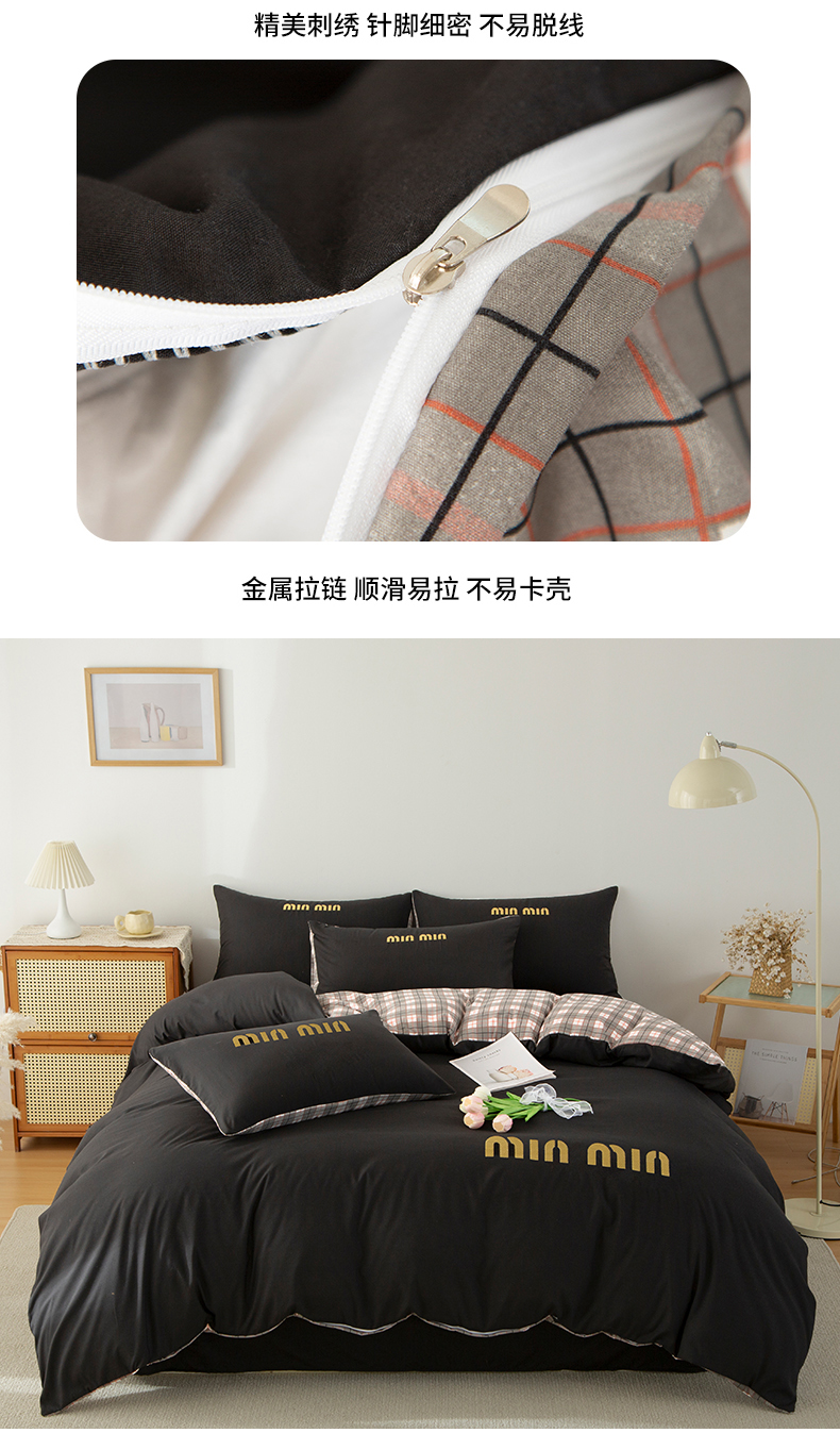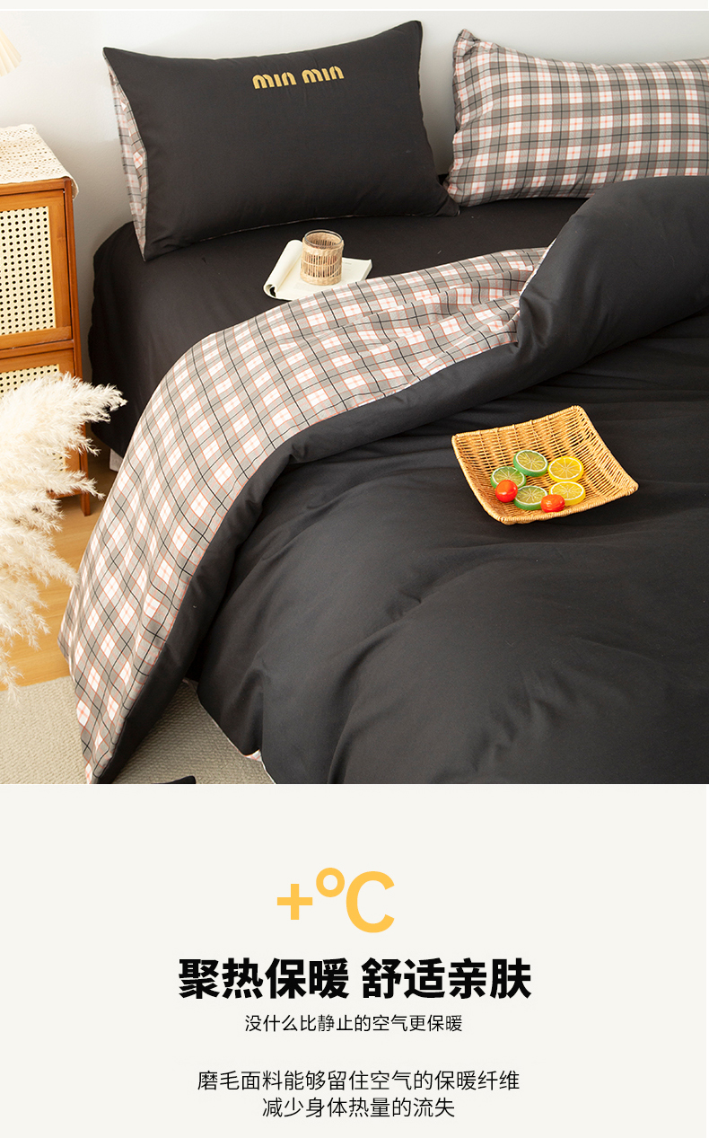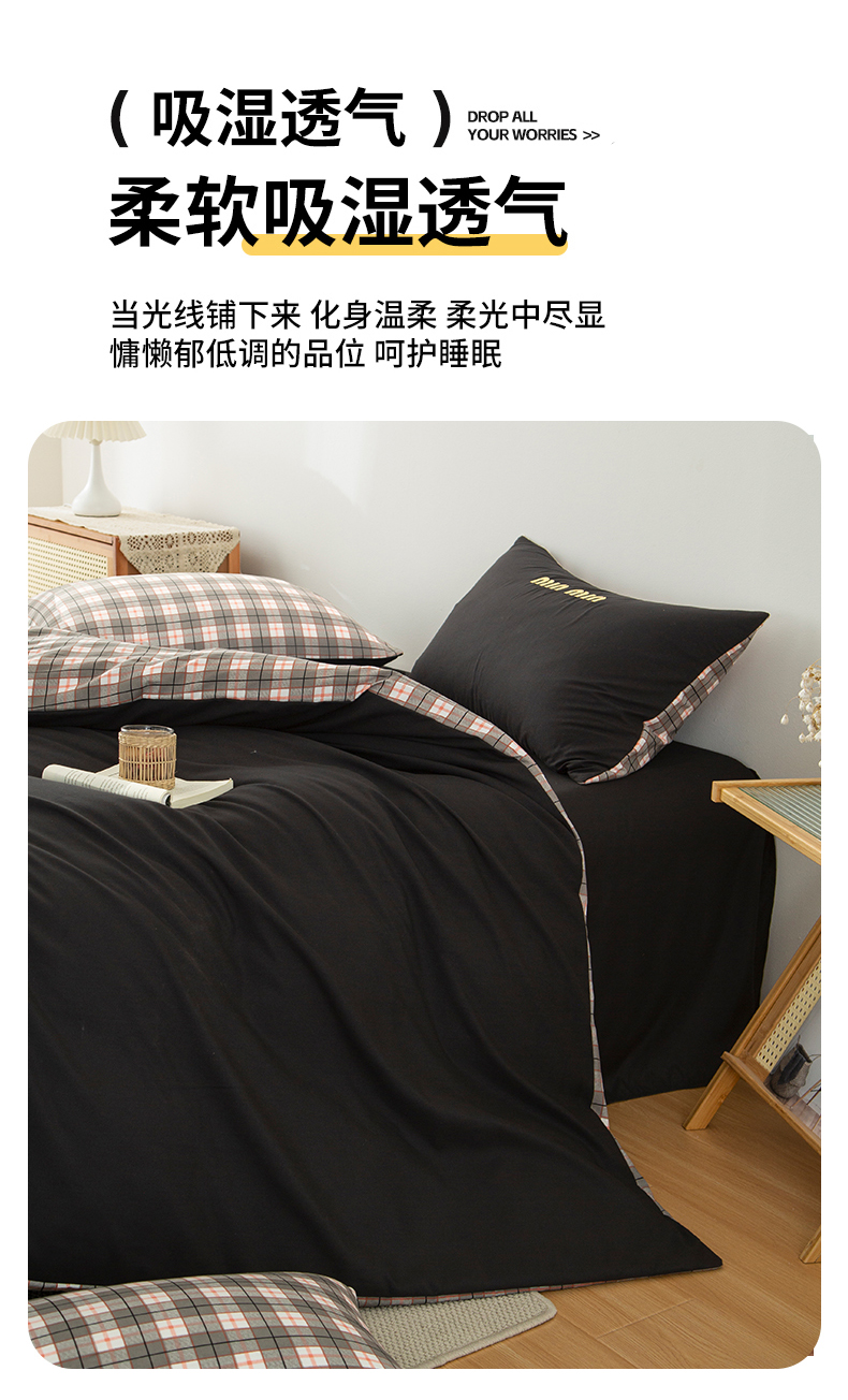 商品名称:富宁家纺 2025新款青春格子纯色双拼学生宿舍三件套四件套 黑色