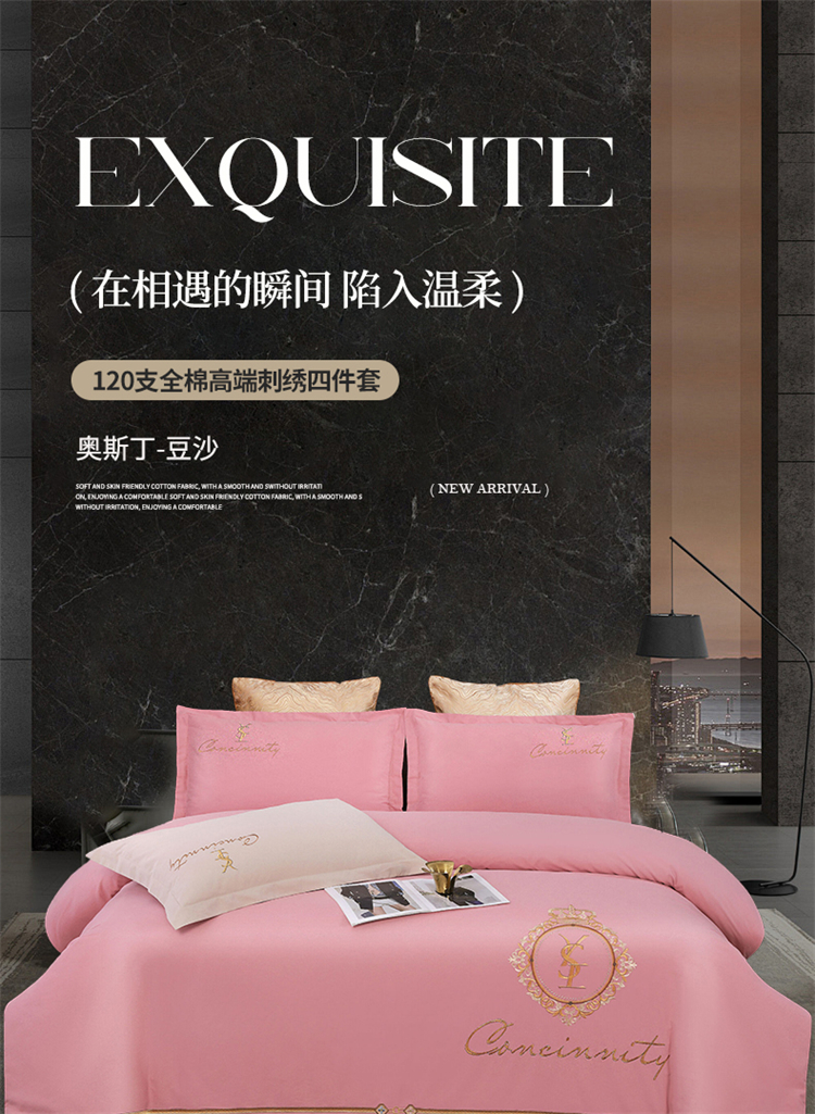 商品名称:2026秋冬新品全棉磨毛刺绣120支四件套系列-奥斯丁 奥斯丁-豆沙