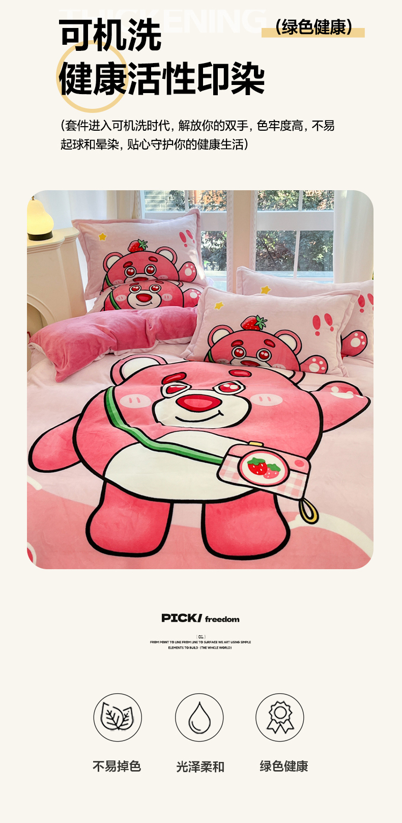 (总)喜梦缘 2025 新款大版卡通牛奶绒印花四件套,比耶狗(有三件套),独角兽,公主兔,梦龙宝贝,草莓熊(有三件套),爱心草莓,萌萌兔(有三件套),彩虹熊,熊先生,元气满满(有三件套),月亮熊,熊猫宝宝,甜心公主,太空漫步(有三件套),快乐猪仔,蛋仔,花儿朵朵,花意,波点熊仔,腊肠派对,猫狗日记,郁金香,旺旺小狗,阳光男孩(有三件套),小獭宝,小酷仔,甜梦,松鼠宝宝,喵咪,酷宝,潮兔