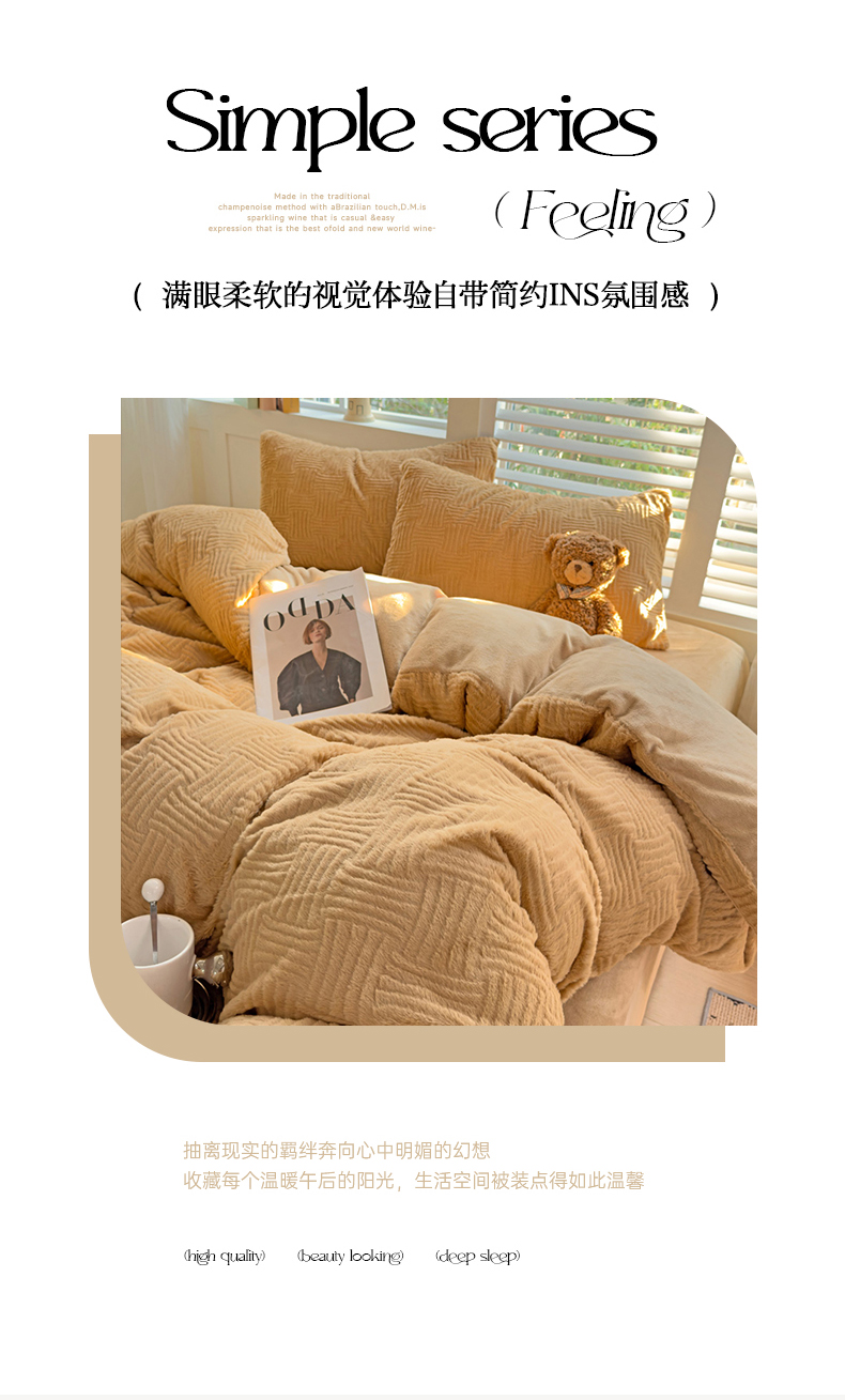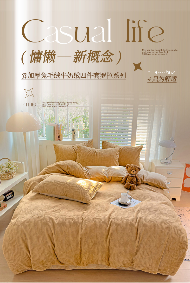 商品名称:N先生 2024新款兔毛绒牛奶绒四件套-罗拉系列 罗拉-咖