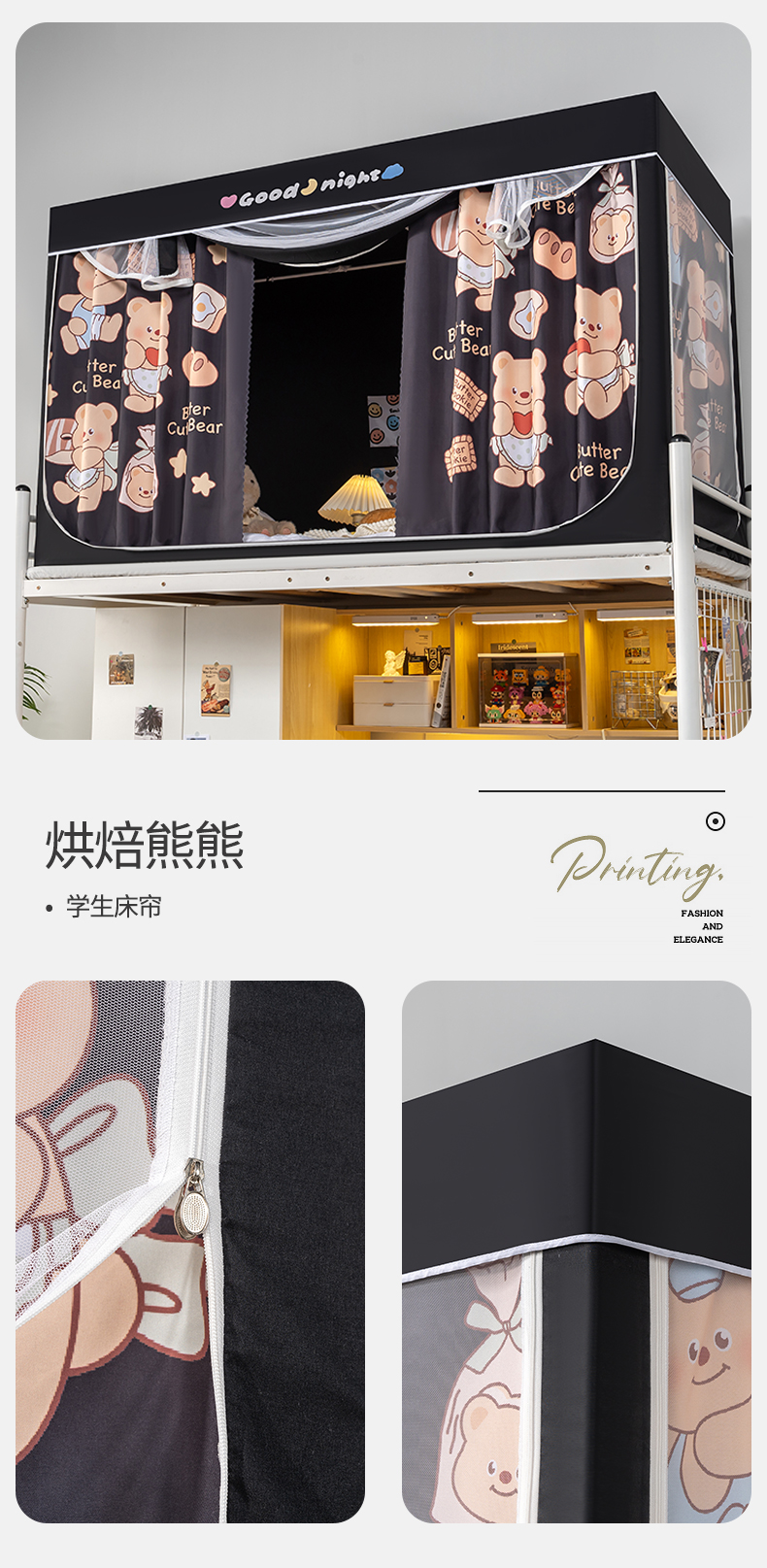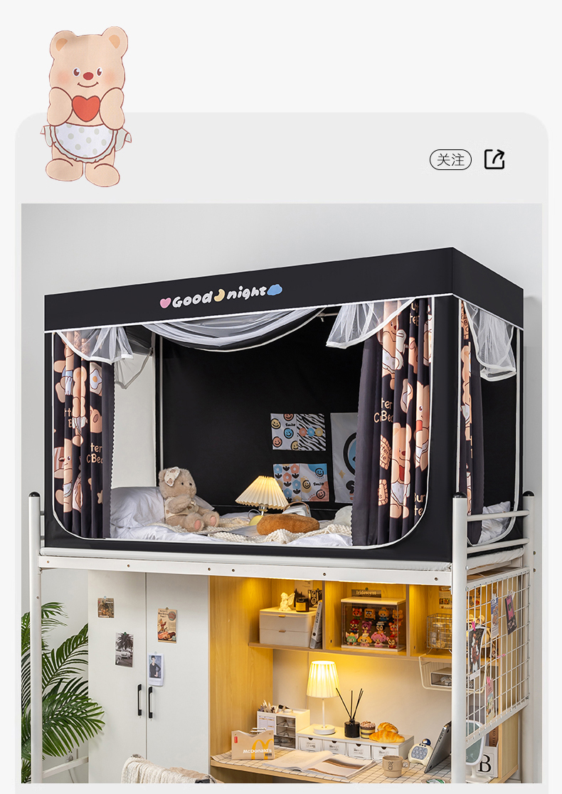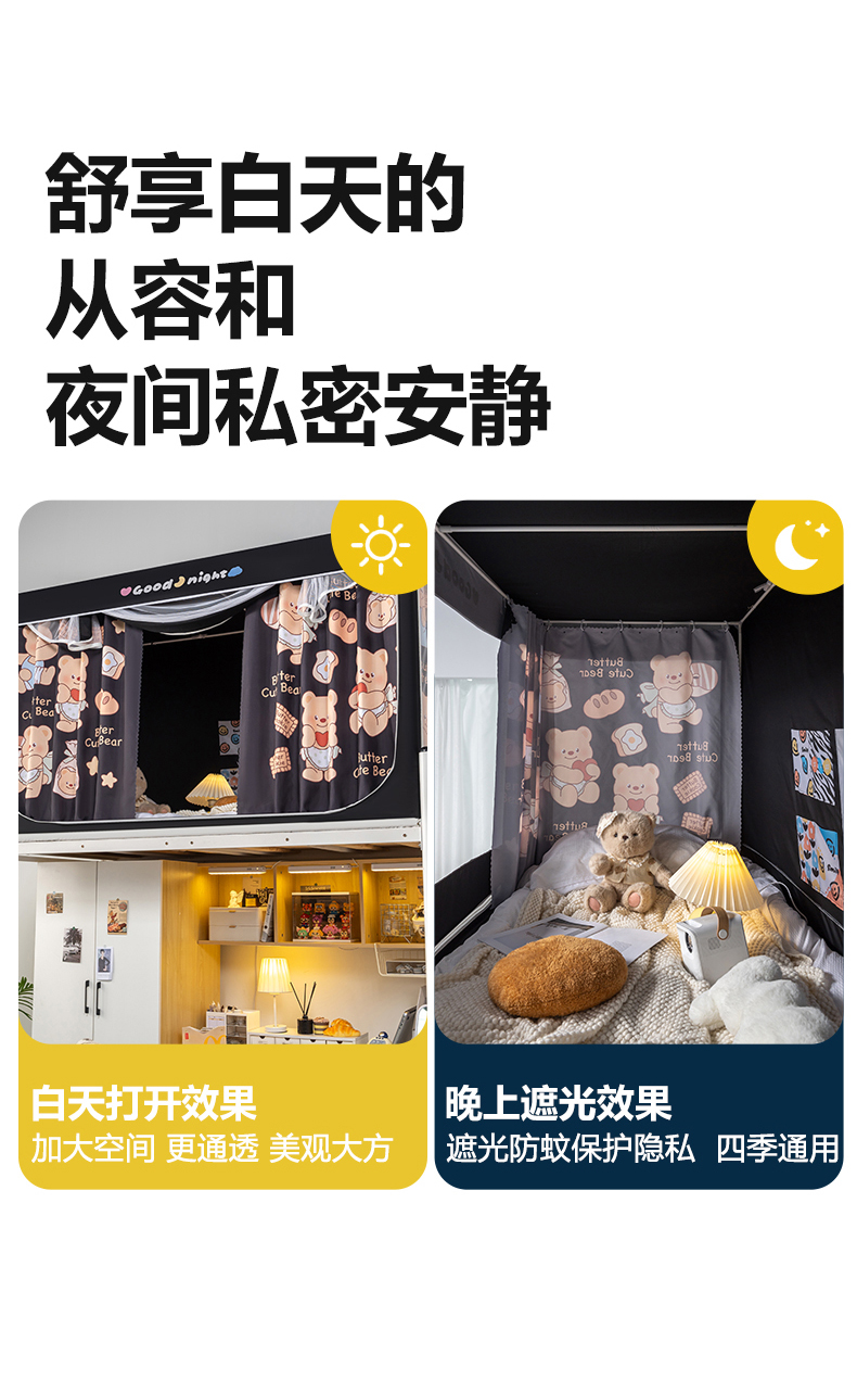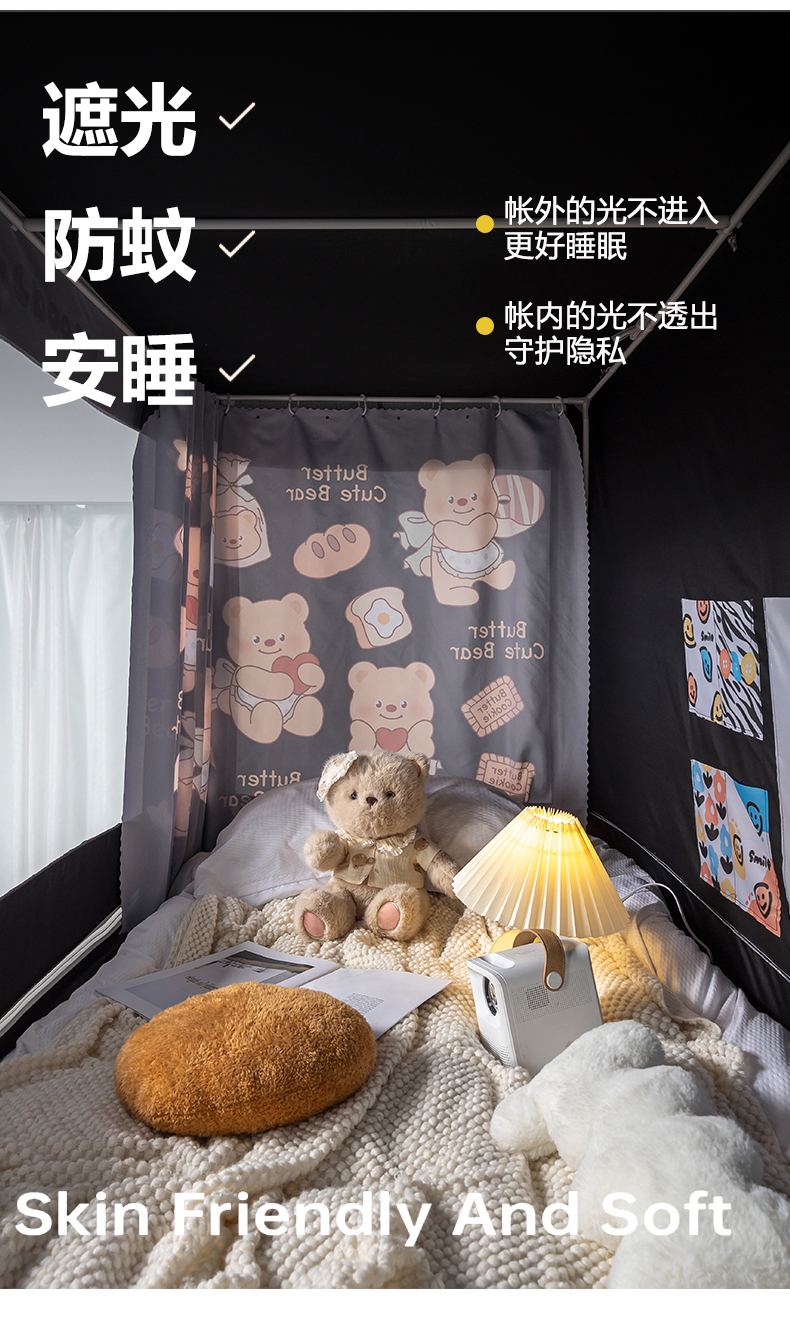 商品名称:新太阳蚊帐 2025新款卡通学生遮光床帘 烘焙熊熊