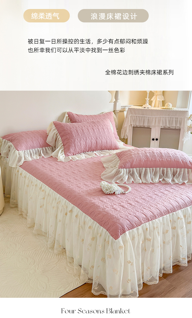 (总)网红馆(ck家纺) 2025新款色织提花牛奶绒床裙四件套-洛丽塔系列,洛丽塔-豆沙,洛丽塔-蓝色,洛丽塔-米色
