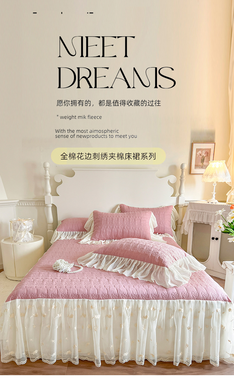 (总)网红馆(ck家纺) 2025新款牛奶绒花边床盖四件套-甜蜜蜜,甜蜜蜜-粉,甜蜜蜜-咖,甜蜜蜜-绿,甜蜜蜜-米,甜蜜蜜-紫