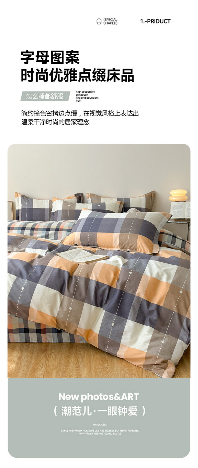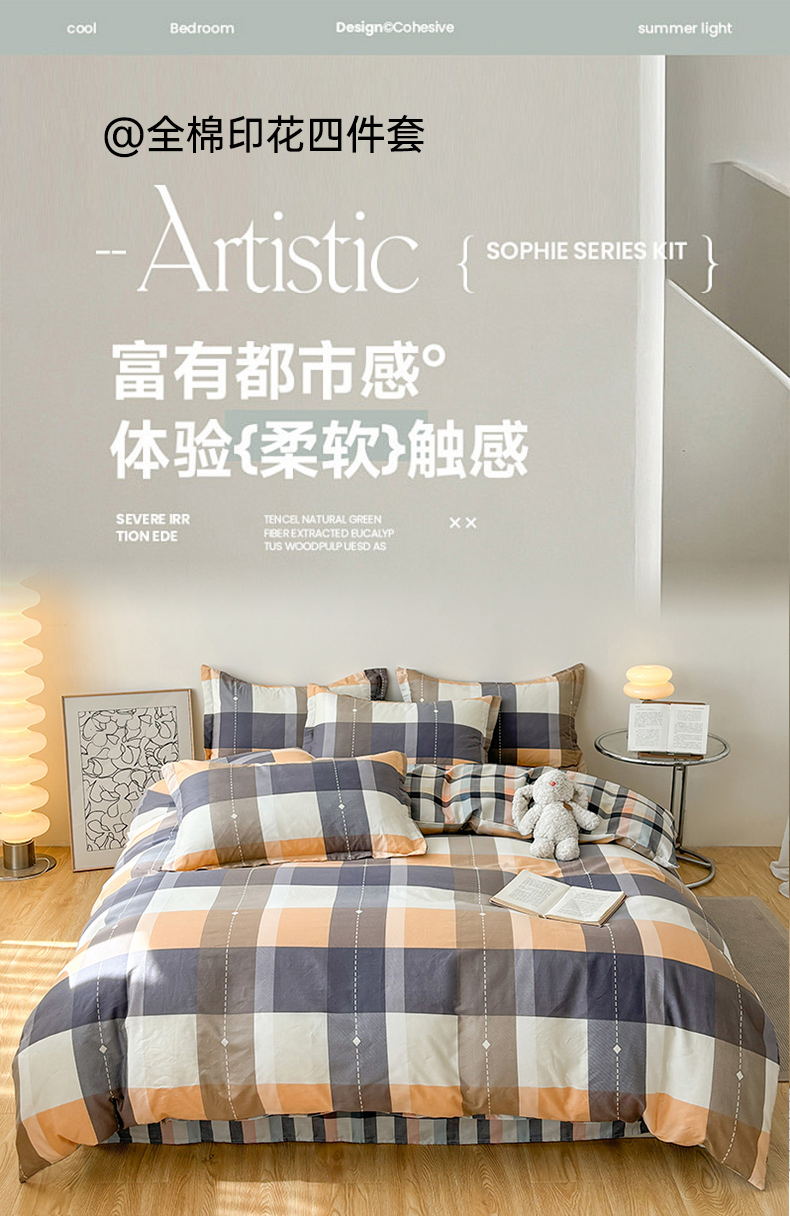 慕木家纺 2025新款全棉印花四件套 时尚风采-桔