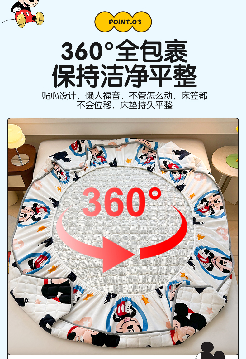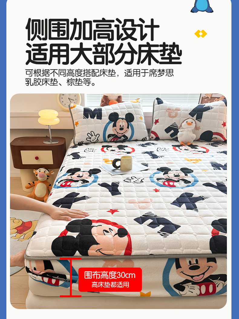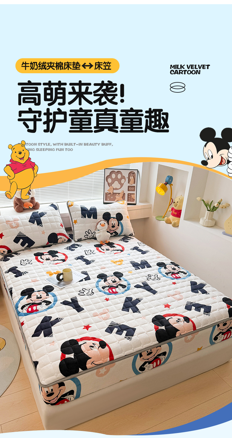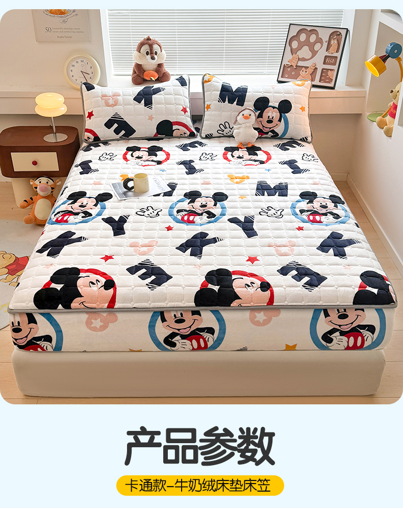 商品名称:迪梦思 2024新款正版授权卡通牛奶绒床垫床护垫 学生床垫床笠 酷酷米奇-床笠款