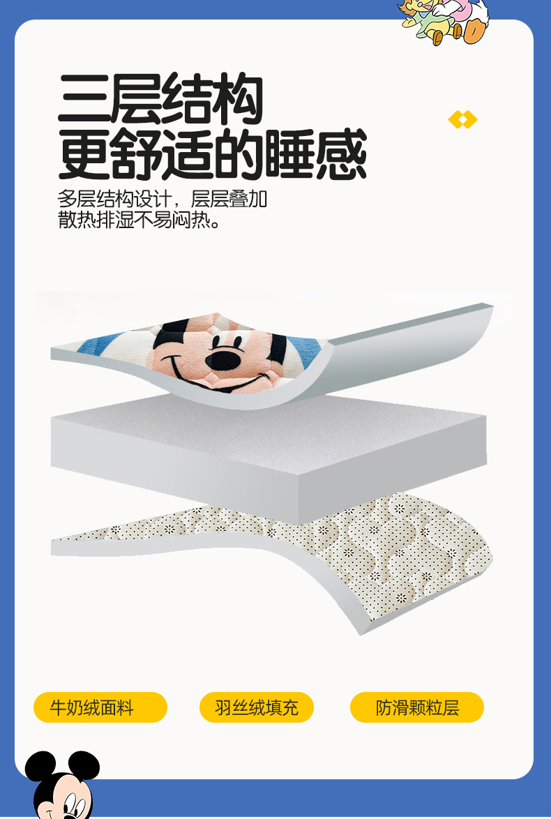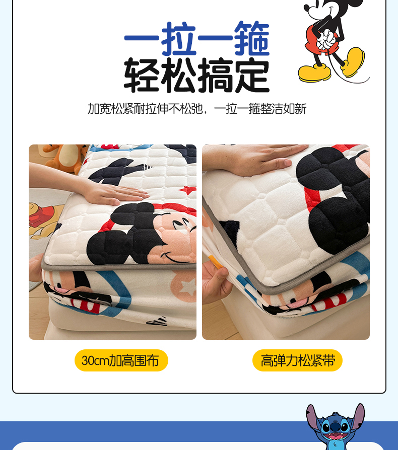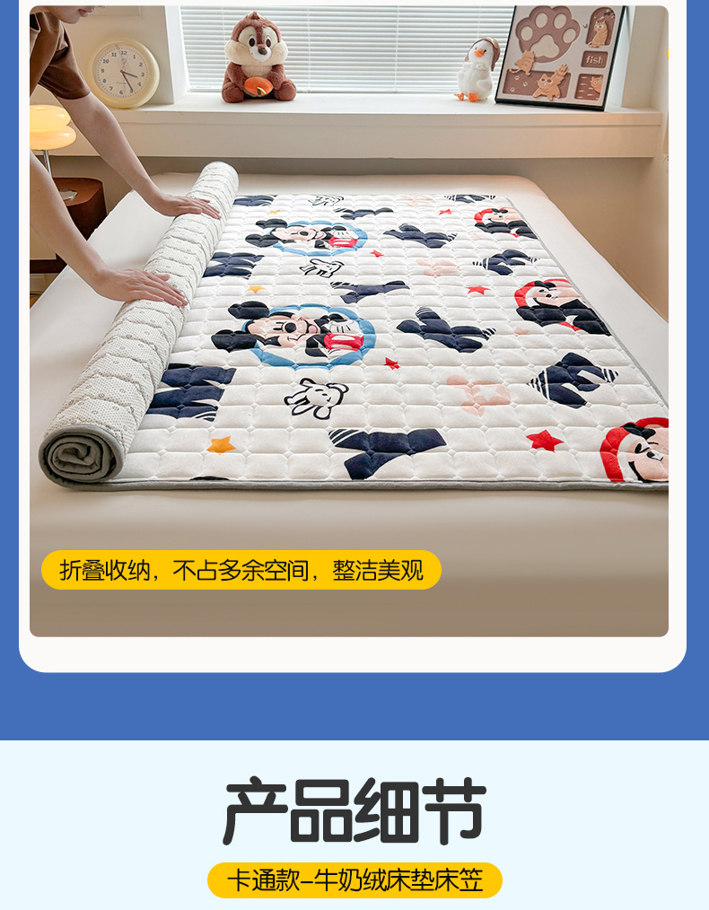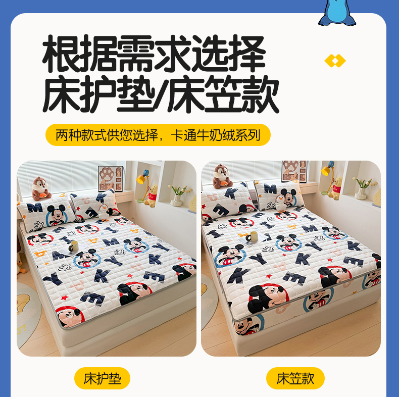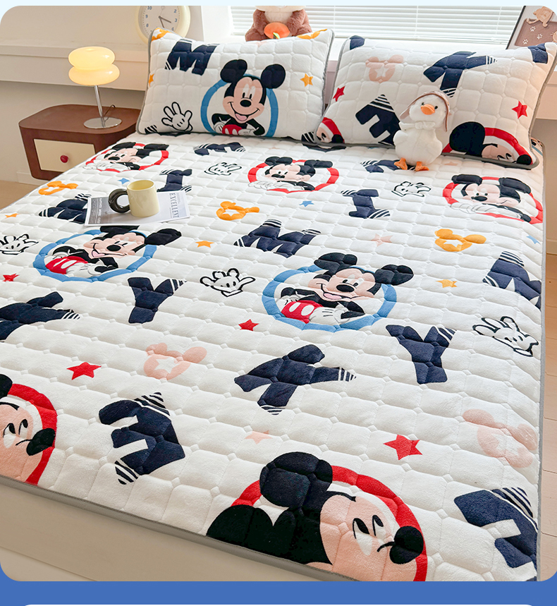 商品名称:迪梦思 2024新款正版授权卡通牛奶绒床垫床护垫 学生床垫床笠 酷酷米奇-床笠款