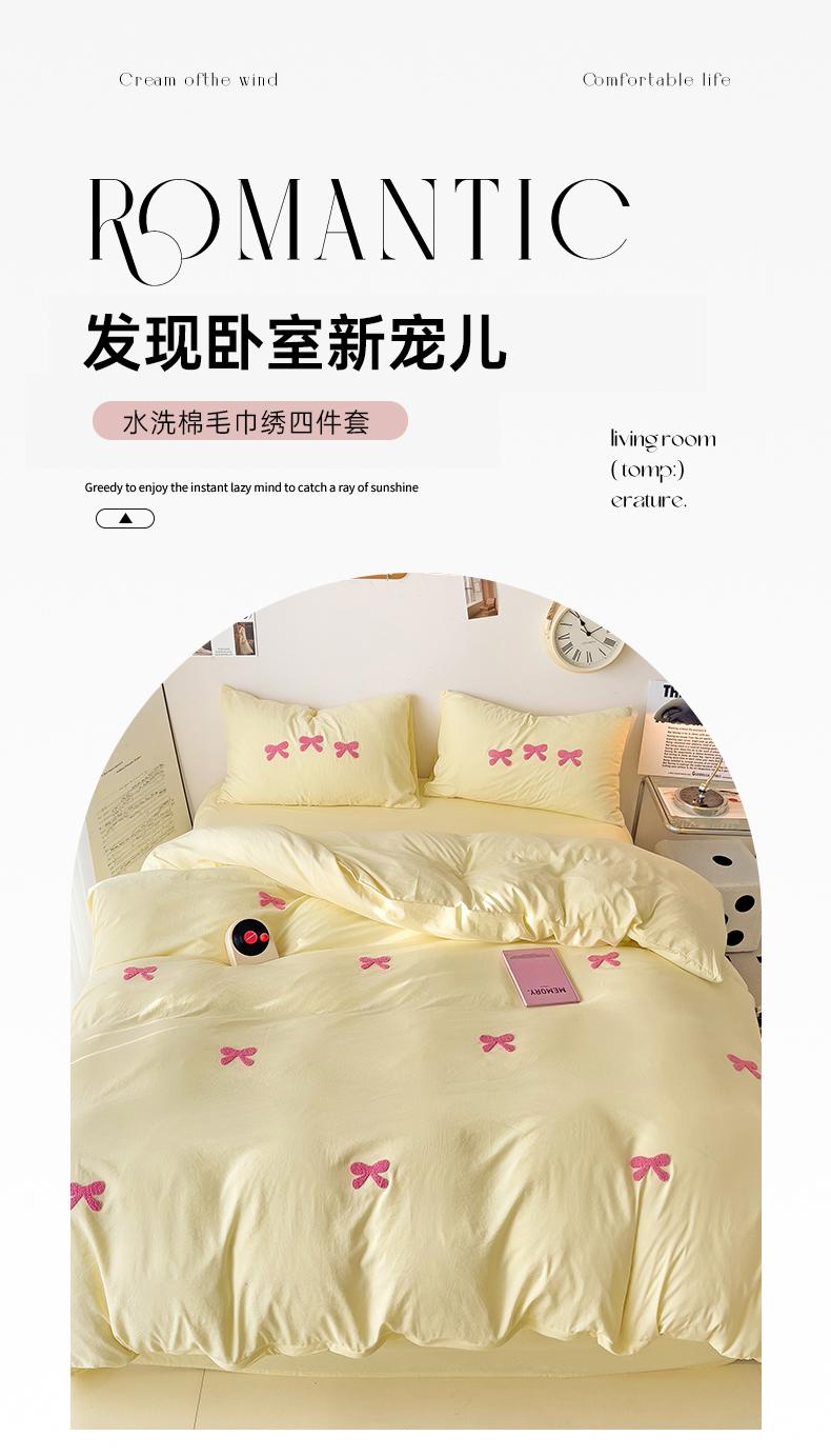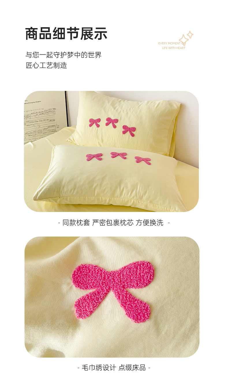 当前位置: 91家纺网 > 商品网购 > 床品套件 > 四件套 > 水洗棉四件套 > 森璐家纺 2024新款1水洗棉毛巾绣四件套蝴蝶结学生宿舍三件套(含买家秀) 蝴蝶结-黄玫