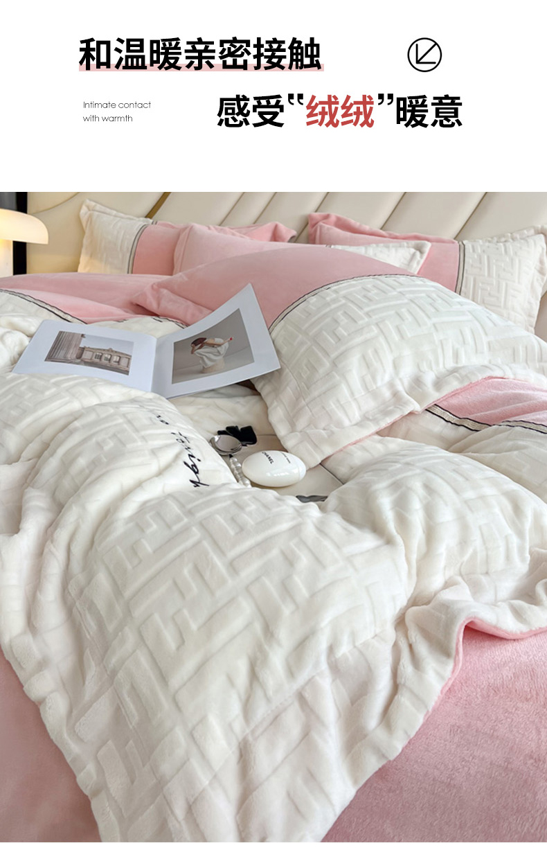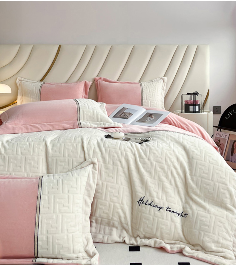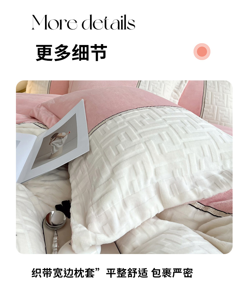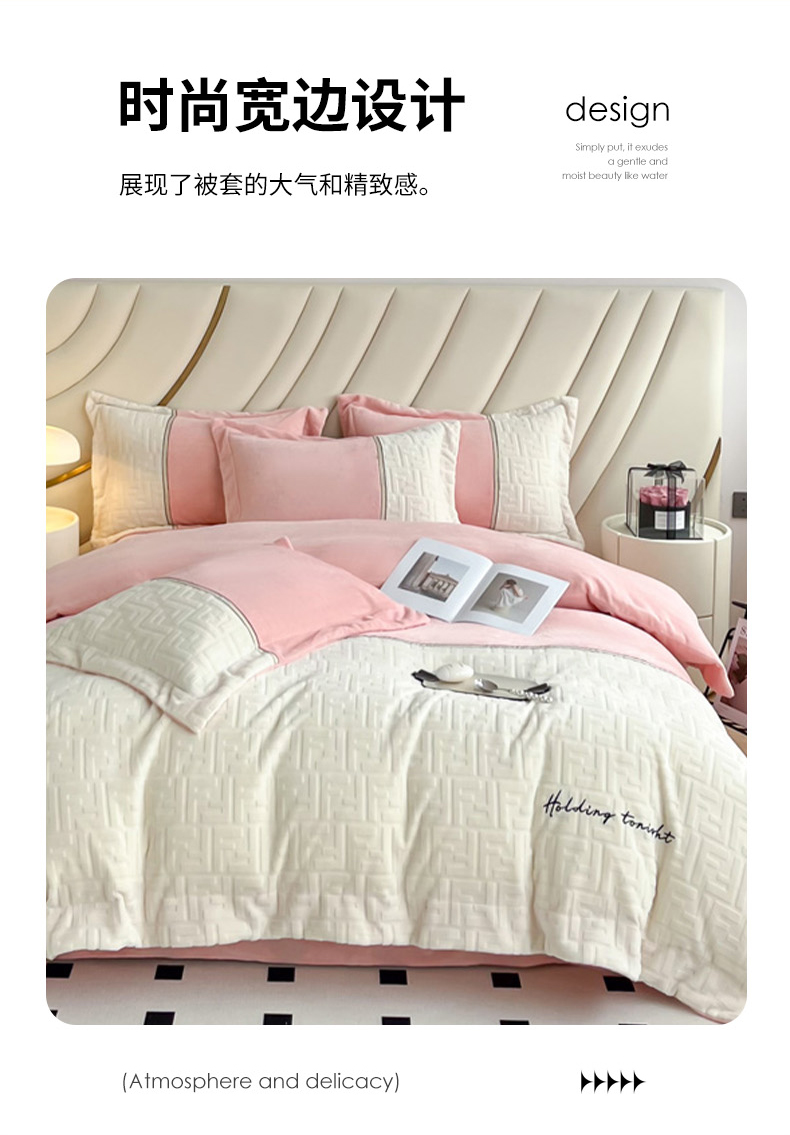 商品名称:2024秋冬新款时尚宽边立体剪花刺绣加厚牛奶绒四件套-赫莲娜系列 赫莲娜粉玉