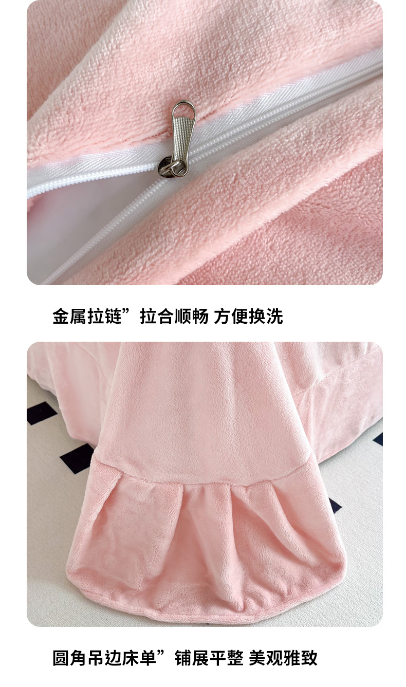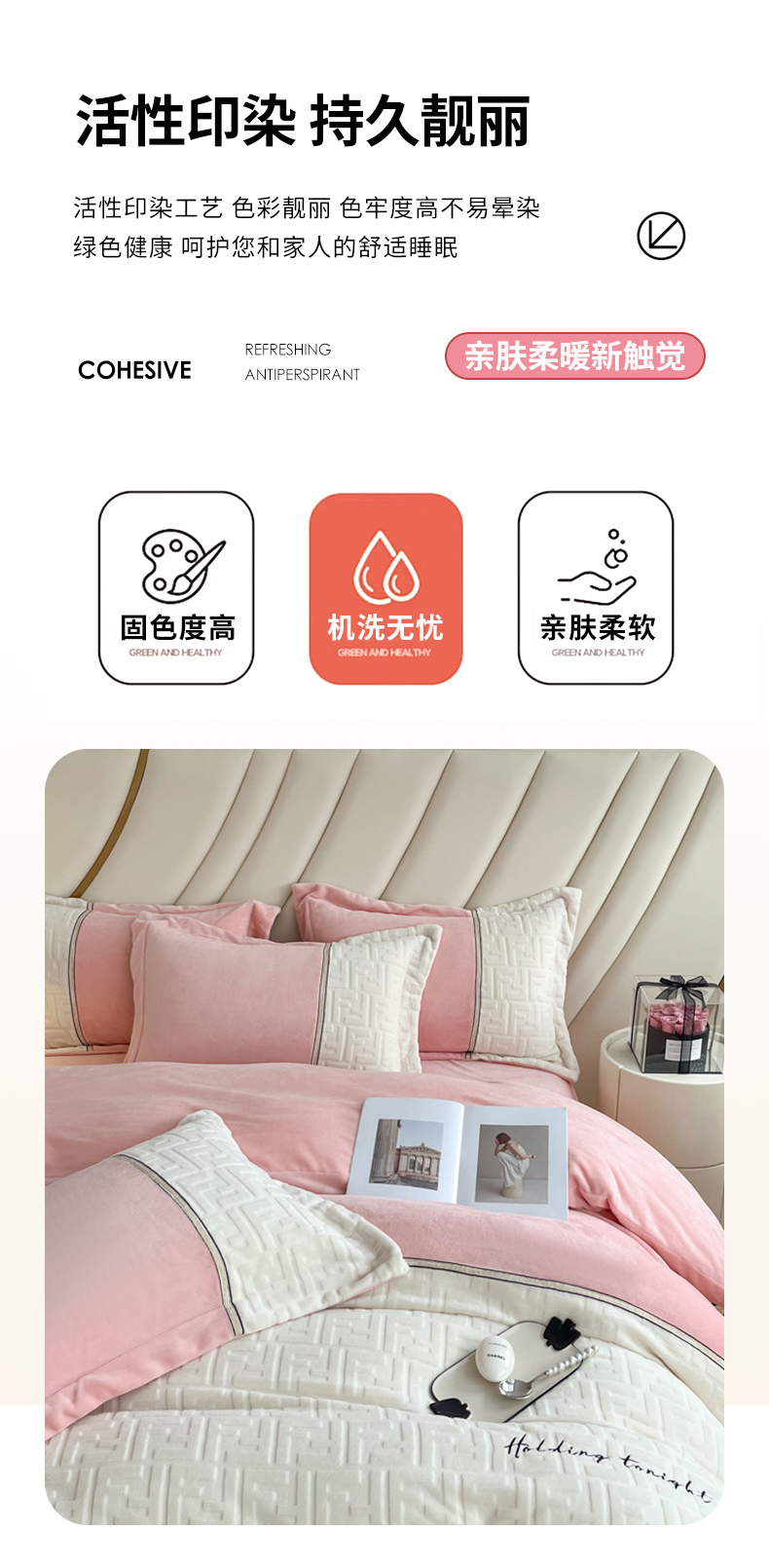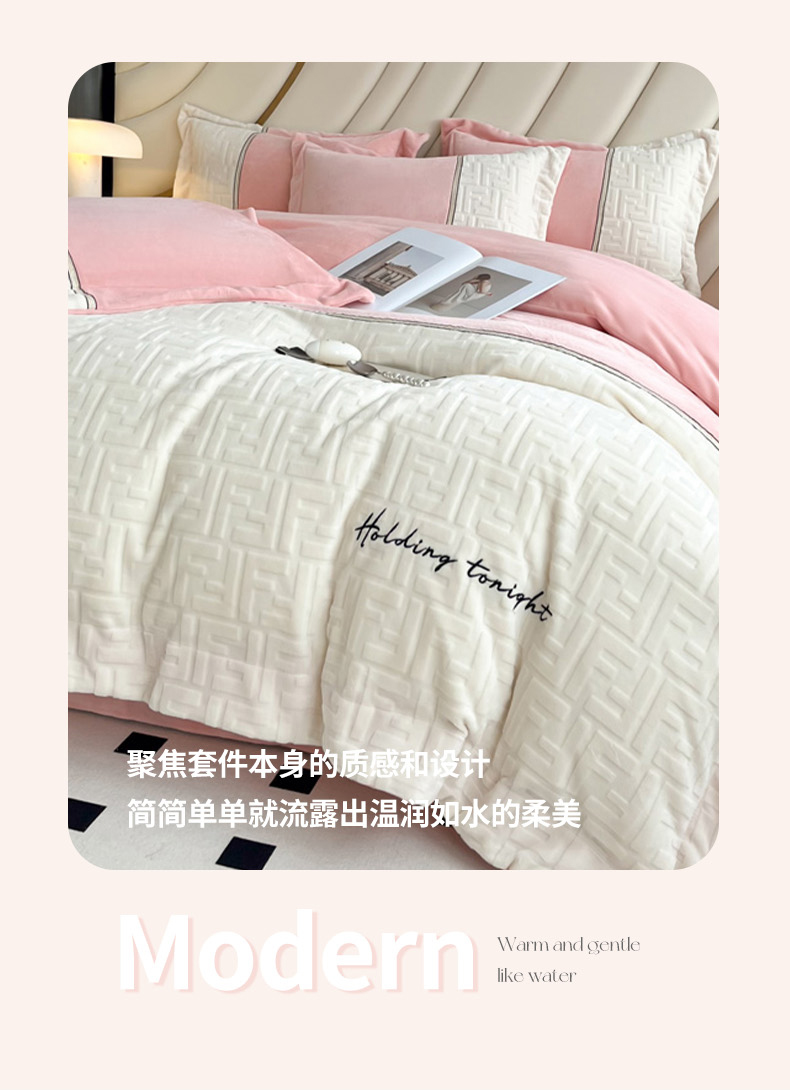 商品名称:2024秋冬新款时尚宽边立体剪花刺绣加厚牛奶绒四件套-赫莲娜系列 赫莲娜粉玉